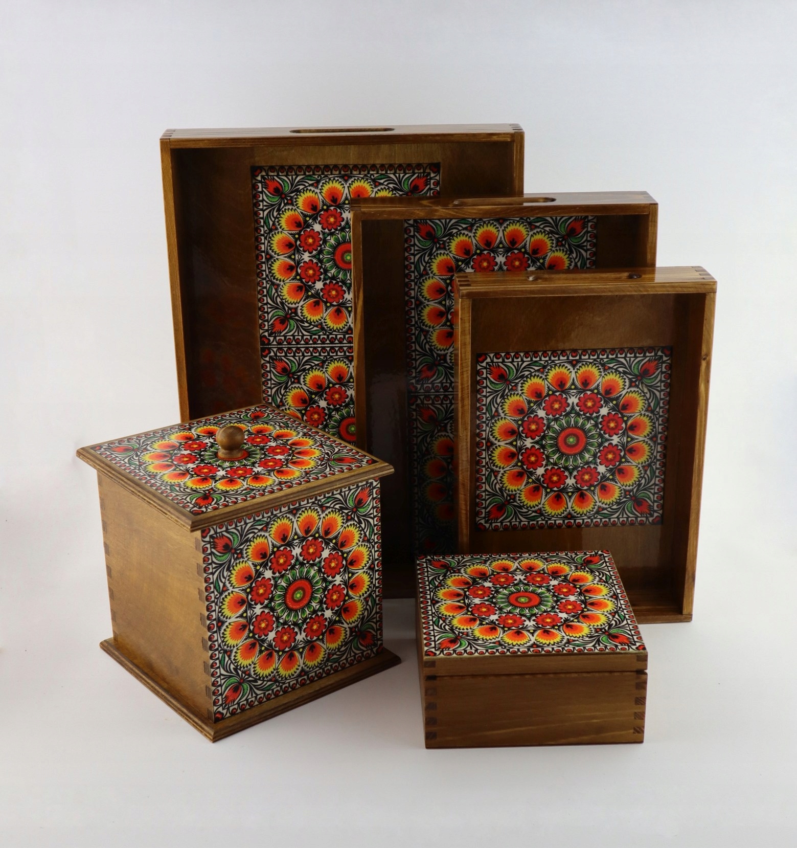 Этот уникальный поднос декорирован в технике декупаж фольклорным орнаментом. узор, который придает ему уникальный характер. Цветочный узор добавляет нежности и свежести.