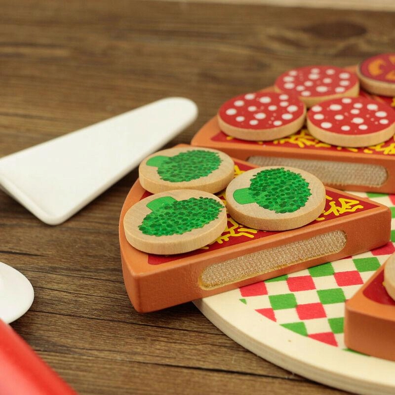 - ✨ В КОМПЛЕКТЕ - в набор входит целых 27 элементов: подставка, 6 кусочков пиццы, лопаточка, нож для деления теста, а также 3 кусочка ананаса, луковица , помидоры, брокколи, оливки и салями. Вся вещь изготовлена из качественного дерева и окрашена специальной краской, безвредной для здоровья. Кроме того, у него есть липучка, позволяющая разрезать пиццу и собрать ее после игры.