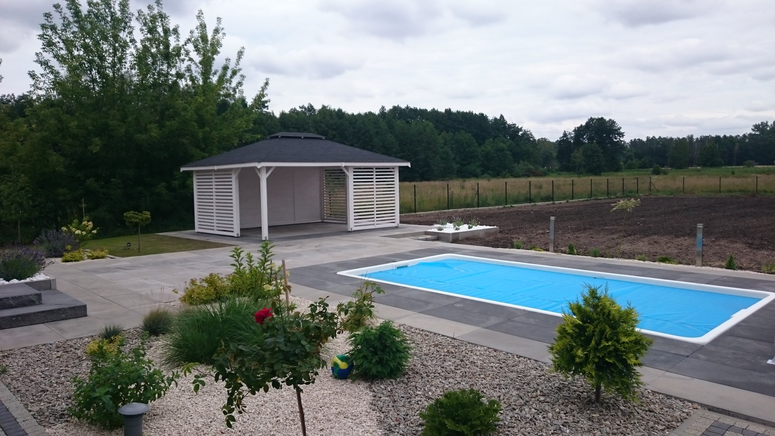 Беседка БЕРЛИН может стать украшением вашего сада! Аккуратно сделанный из сосновой древесины, квадрат: 5 см х 5 см и внутри горизонтальный брус 3 см х 5 см - это будет функциональный крытый элемент сада или сюжет! Цвет беседки можно подобрать к общему обустройству – это цвет пропитки DREWNOCHRON, дважды защищающей укрытие. Цвета на выбор: зеленый, японская вишня, венге, тик, серый, натуральная сосна, сосна, палисандр средний, палисандр, темный орех, красное дерево, темный дуб, дуб и кедр.