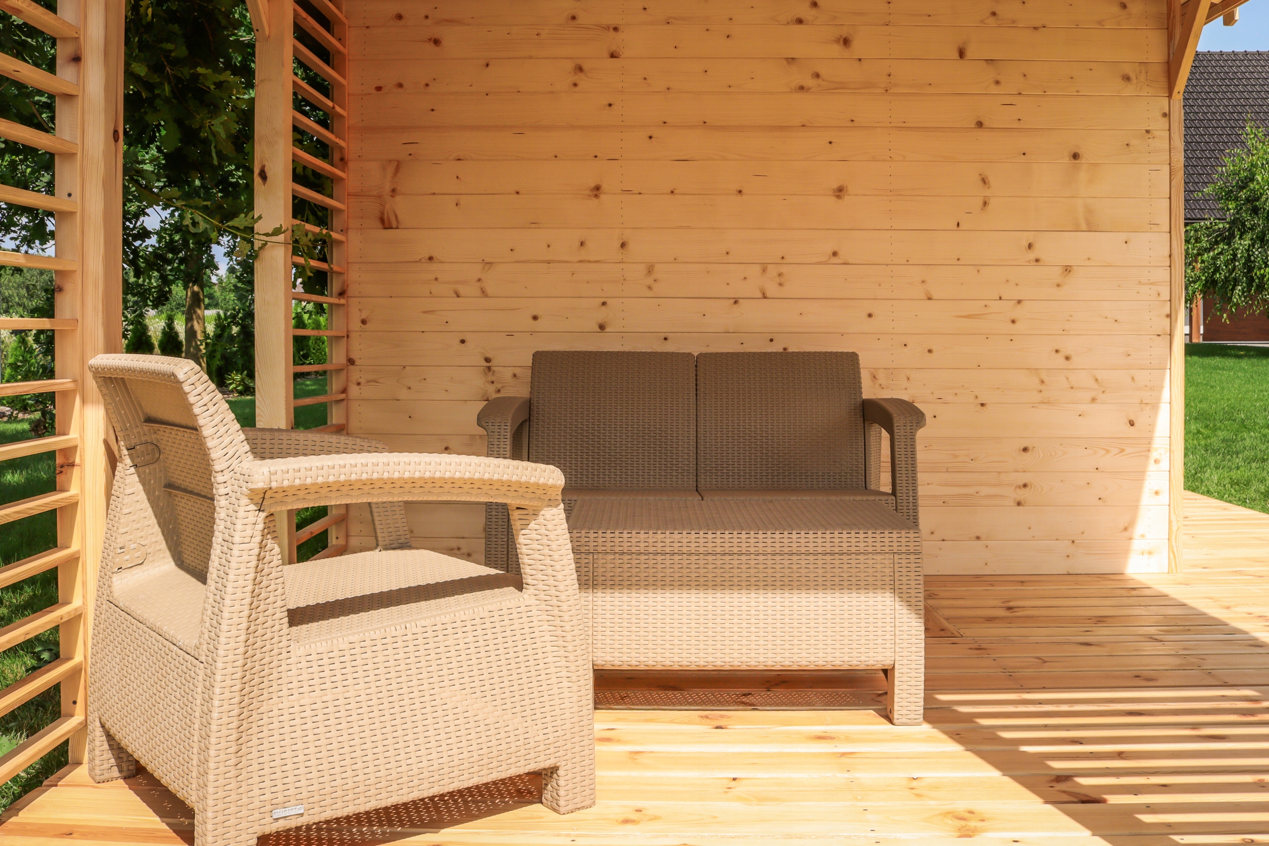 ДЕРЕВЯННЫЙ САДОВЫЙ ДОМ С БЕСЕДКОЙ САН-РЕМО 1 4Х6М ПЛОЩАДЬЮ 24М²