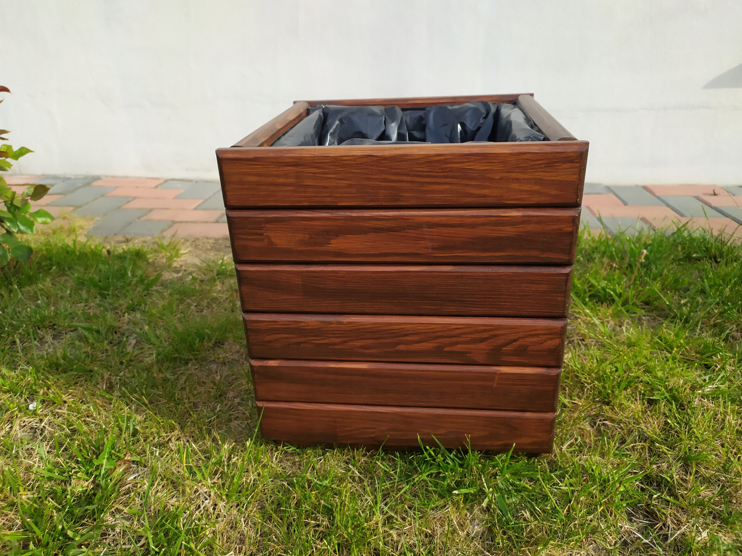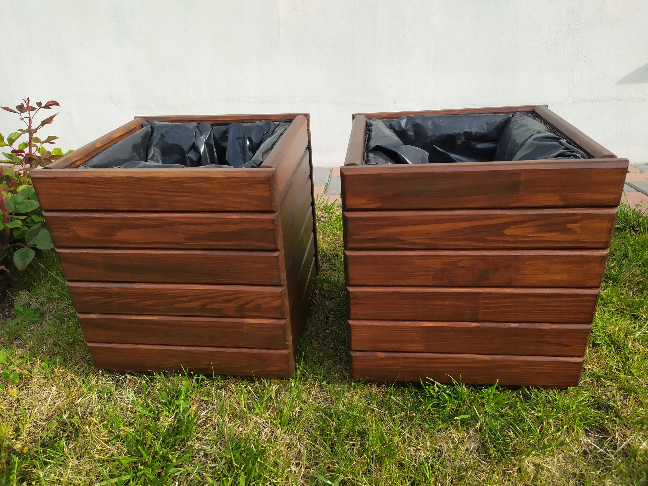 В стандартной комплектации цветочные горшки защищаются пропиткой, а затем окрашиваются морилкой от компании «Drewnochron».