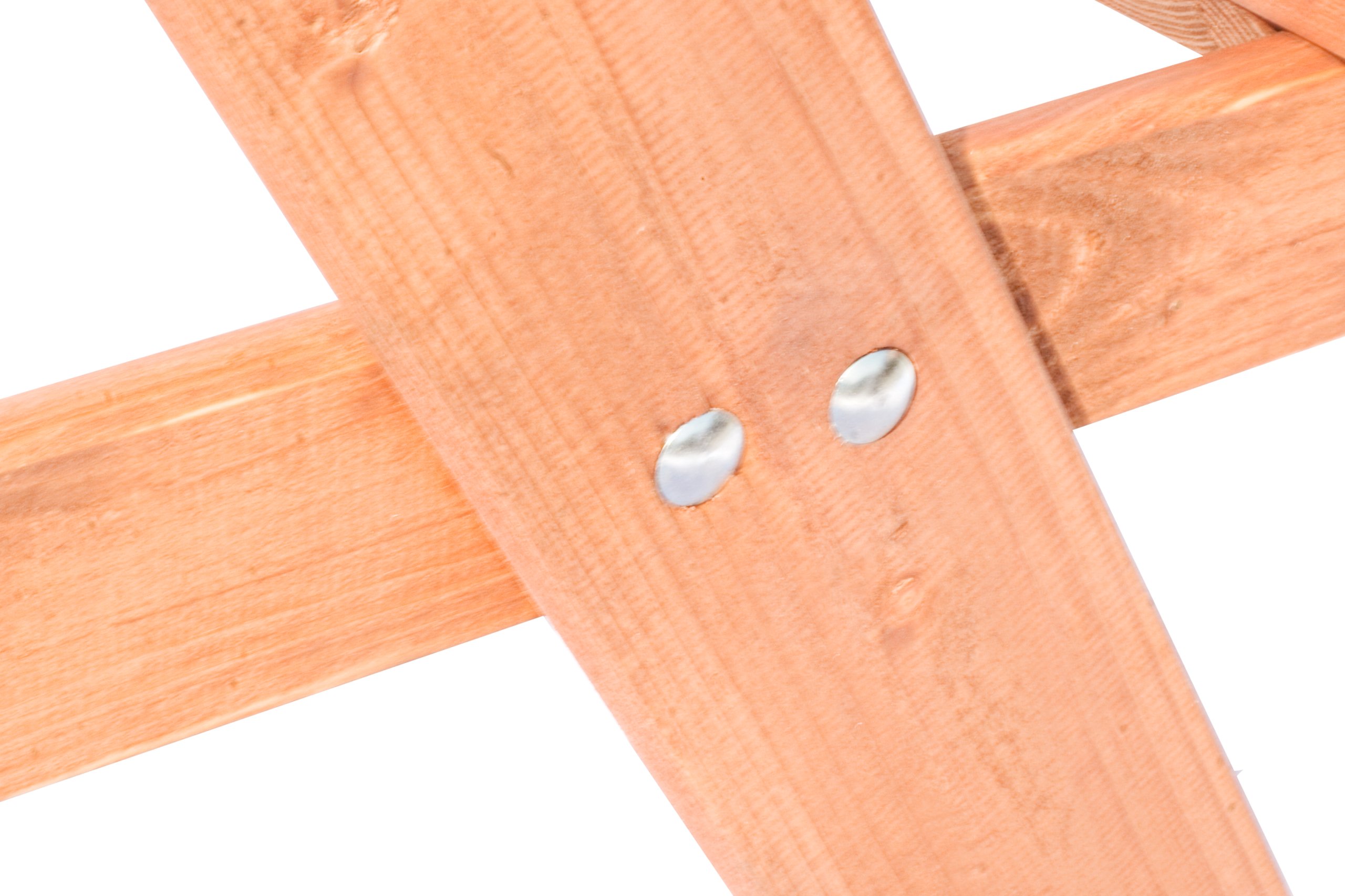 Стол со скамейкой изготовлен из сухой, строганной с четырех сторон древесины хвойных пород.