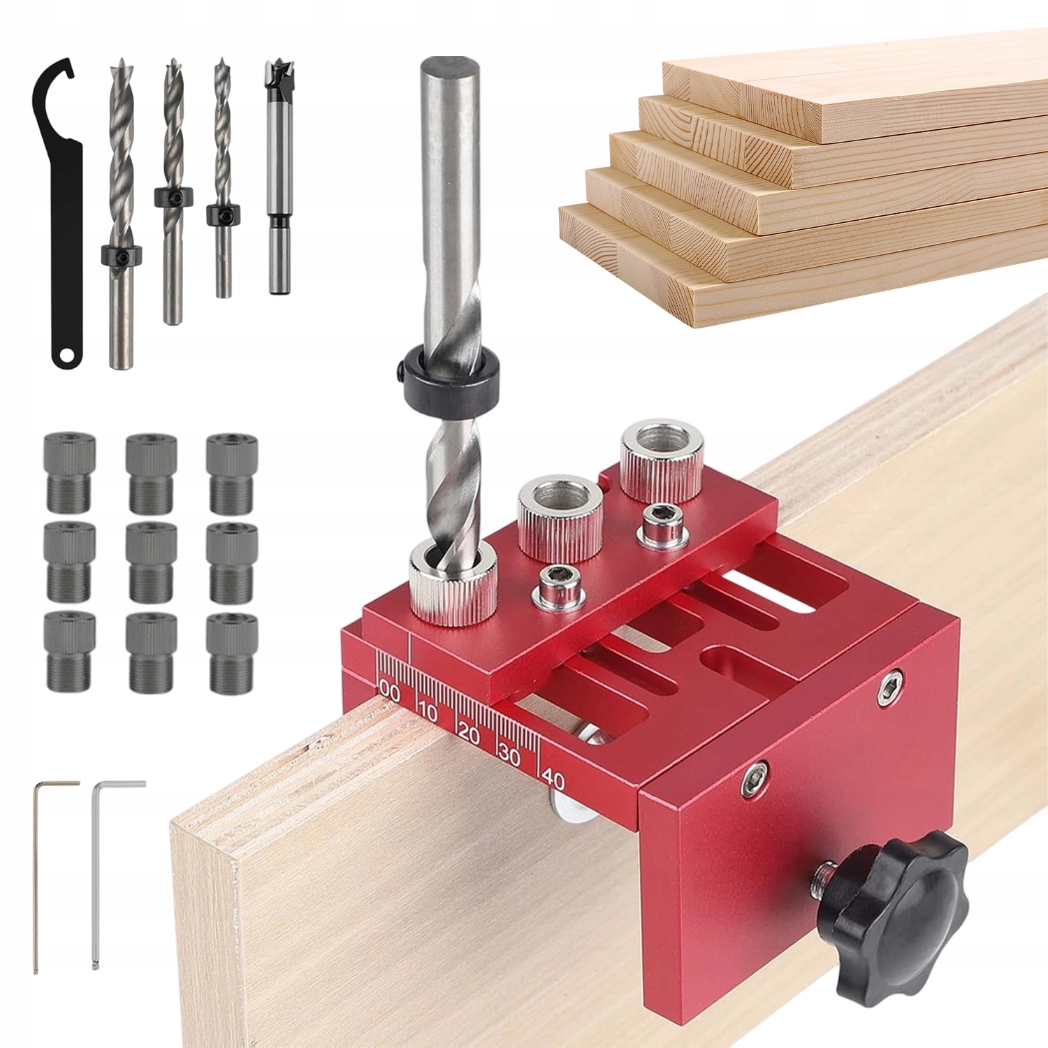 ДЕРЕВЯННЫЙ ШАБЛОН С 4 СВЕРЛАМИ И 9 ДОПОЛНИТЕЛЬНЫМИ ВТУЛКАМИ ДЛЯ ШКАФОВ