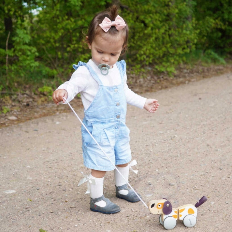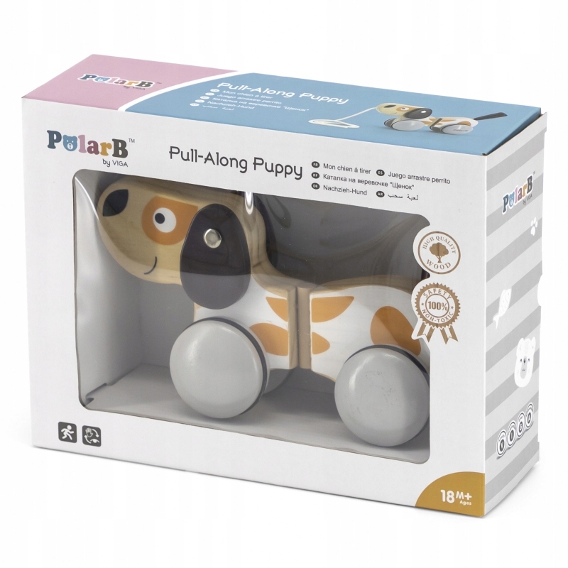 - Полярная деревянная собачка на веревке от Viga Toys будет служить дополнительным стимулом к прогулке для детей, которые учатся брать с собой первые шаги. Модные и приглушенные цвета прекрасно дополнят вашу коллекцию игрушек. У маленького щенка есть поводок, на котором вы сможете гулять по ковру и многое другое. На прогулках собака будет очень вежлива, а главное очень тиха – на колесах имеются резиновые накладки. Накладки заглушат любой стук. Когда малыш потянет за веревочку, собачка начнет двигаться и радостно вилять хвостом. Игрушка упакована в красочную упаковку с окошком. Благодаря эстетичной упаковке игрушка идеальна в качестве подарка!