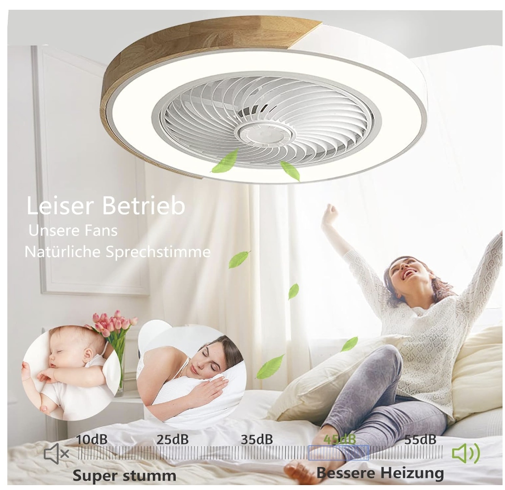 - Новый дизайн: потолочный светильник с вентилятором — идеальное сочетание освещения и вентилятора. Пульт дистанционного управления, регулировка цветовой температуры, 6-ступенчатая регулировка скорости ветра, функция зимнего реверса и таймер (2 часа).
