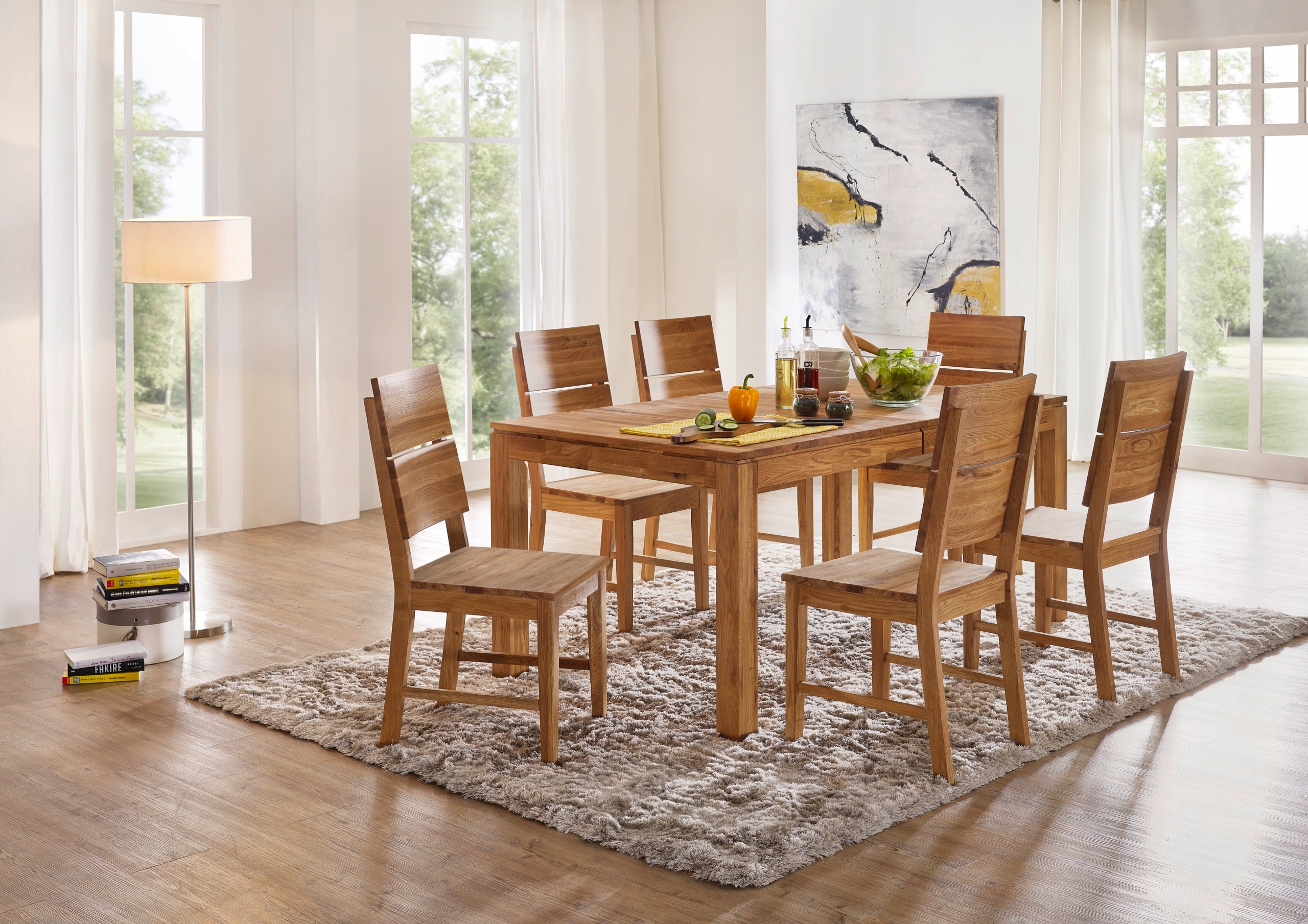 Деревянный СТОЛ 160 см из беленого дуба, массив ДУБА, промасленный, для столовой
