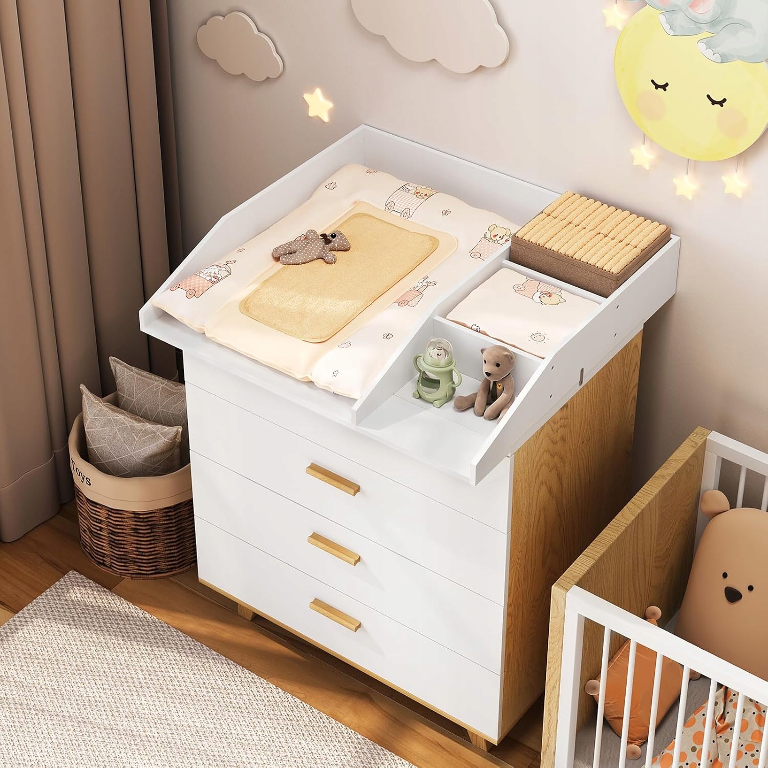 Деревянный сменной столик для ребенка с 4 отсеками, натуральной детской комнатой h1>