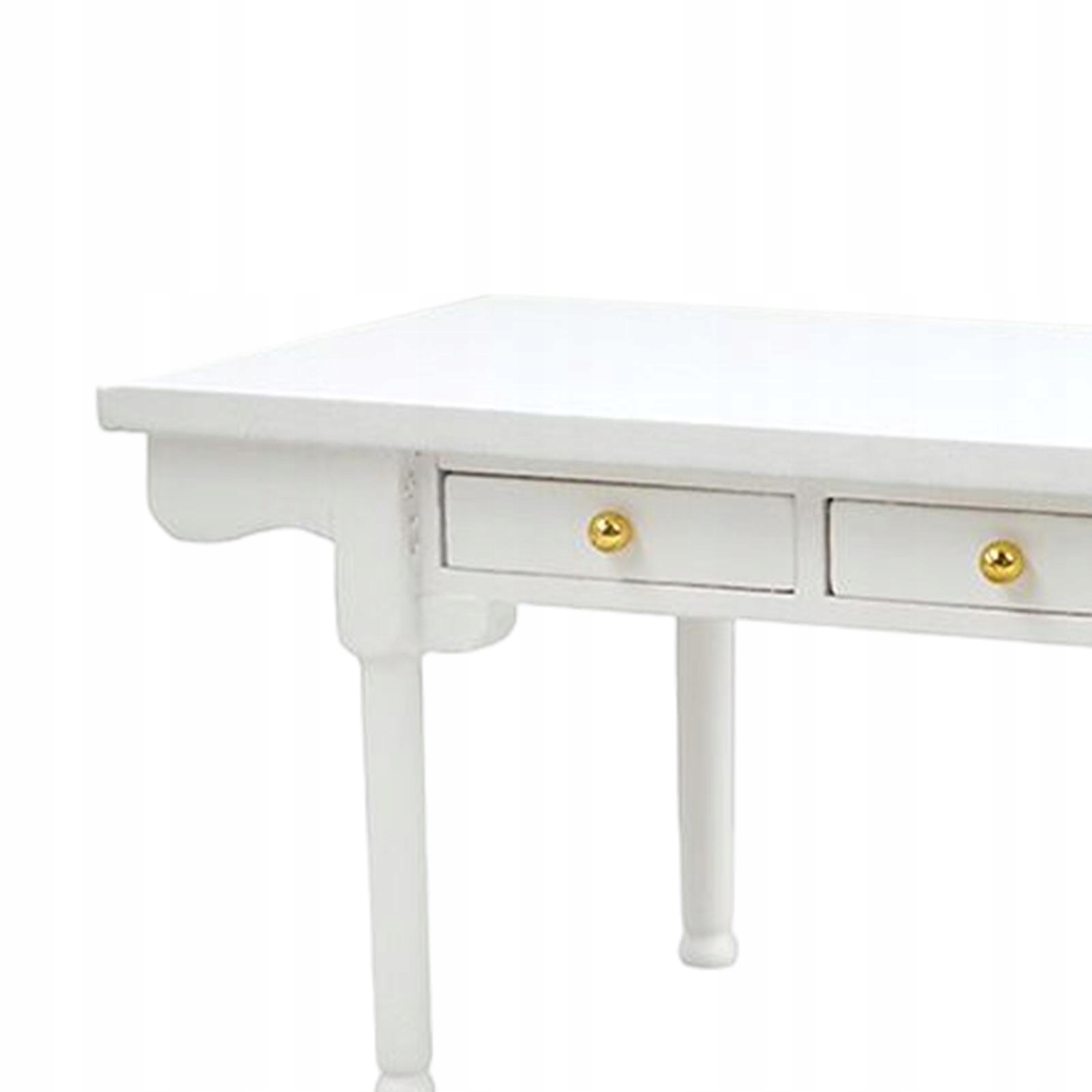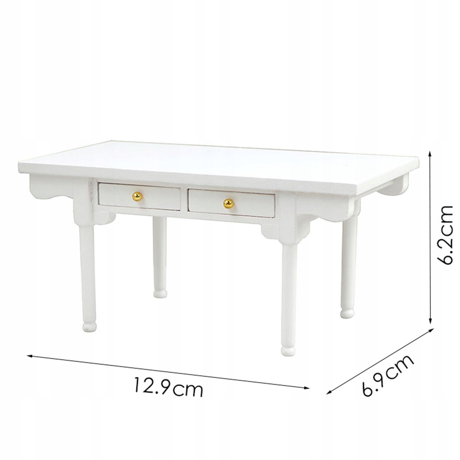 Дерев'яний стіл простого дизайну. Мініатюрний стіл із висувною шухлядою, що відкривається, для білого 1/12