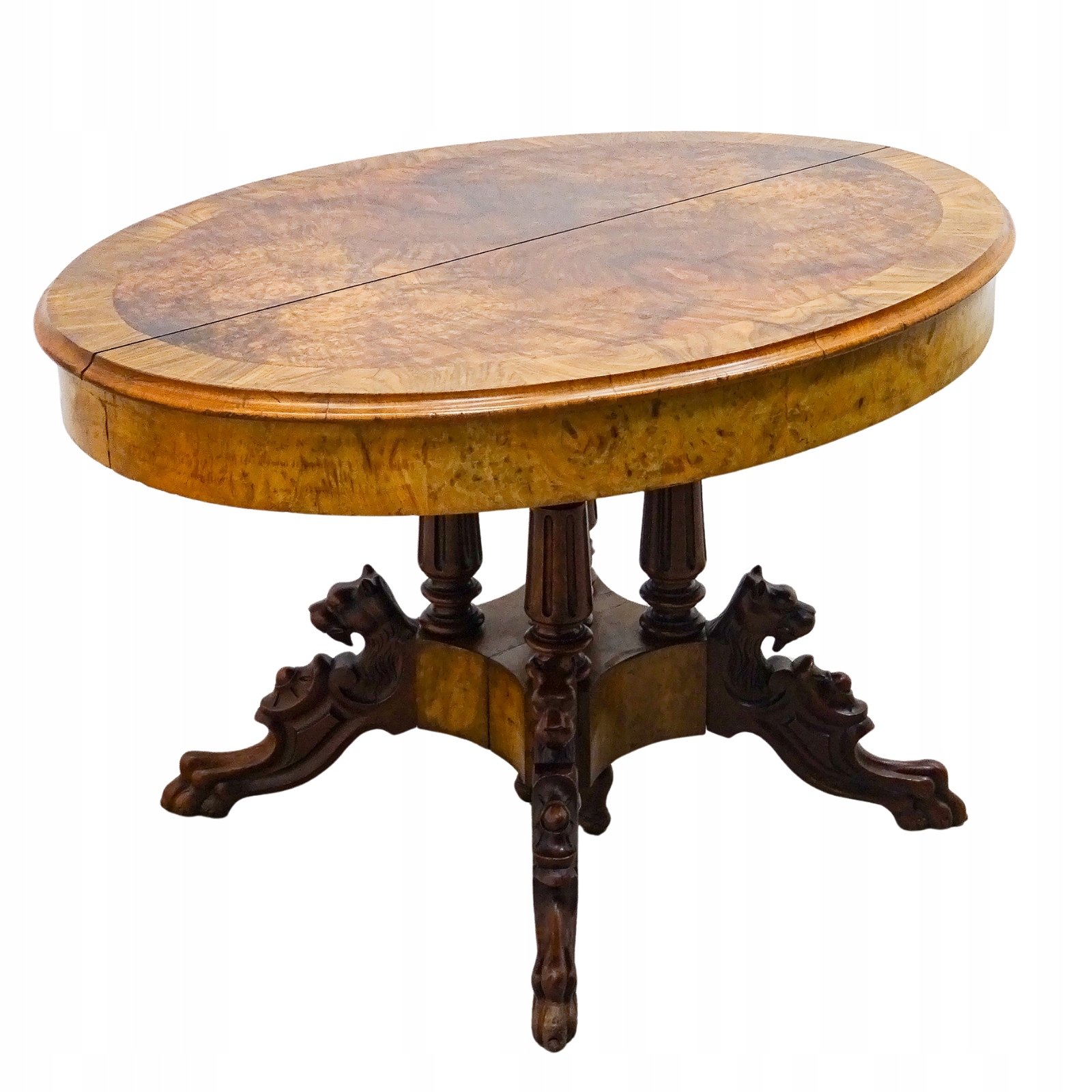 Деревянный раздвижной СТОЛ, ОРЕХ, красивая СТОЛЕШНЯ, ДЕКОРИРОВАННАЯ НОЖКА, 1920-е годы