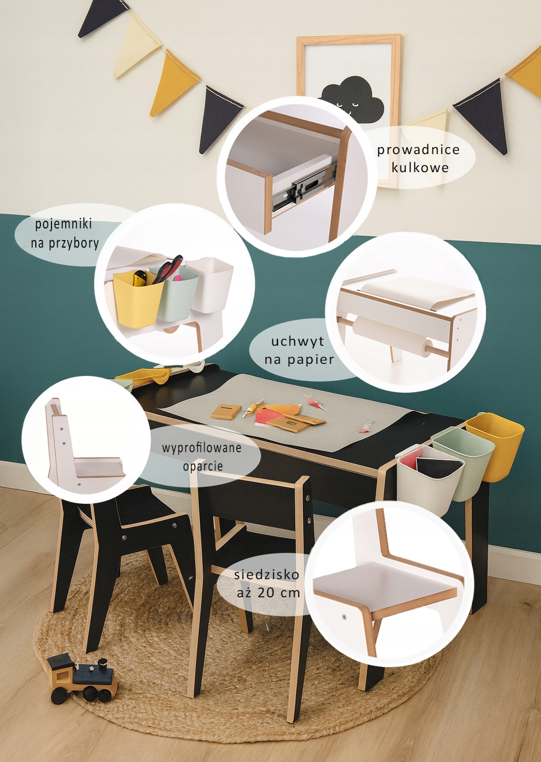 ✅ Полный набор Montessori - таблица + 2 стулья + ящик + питатель из бумаги + 3 карандаша + контейнеры + рулон бумаги
