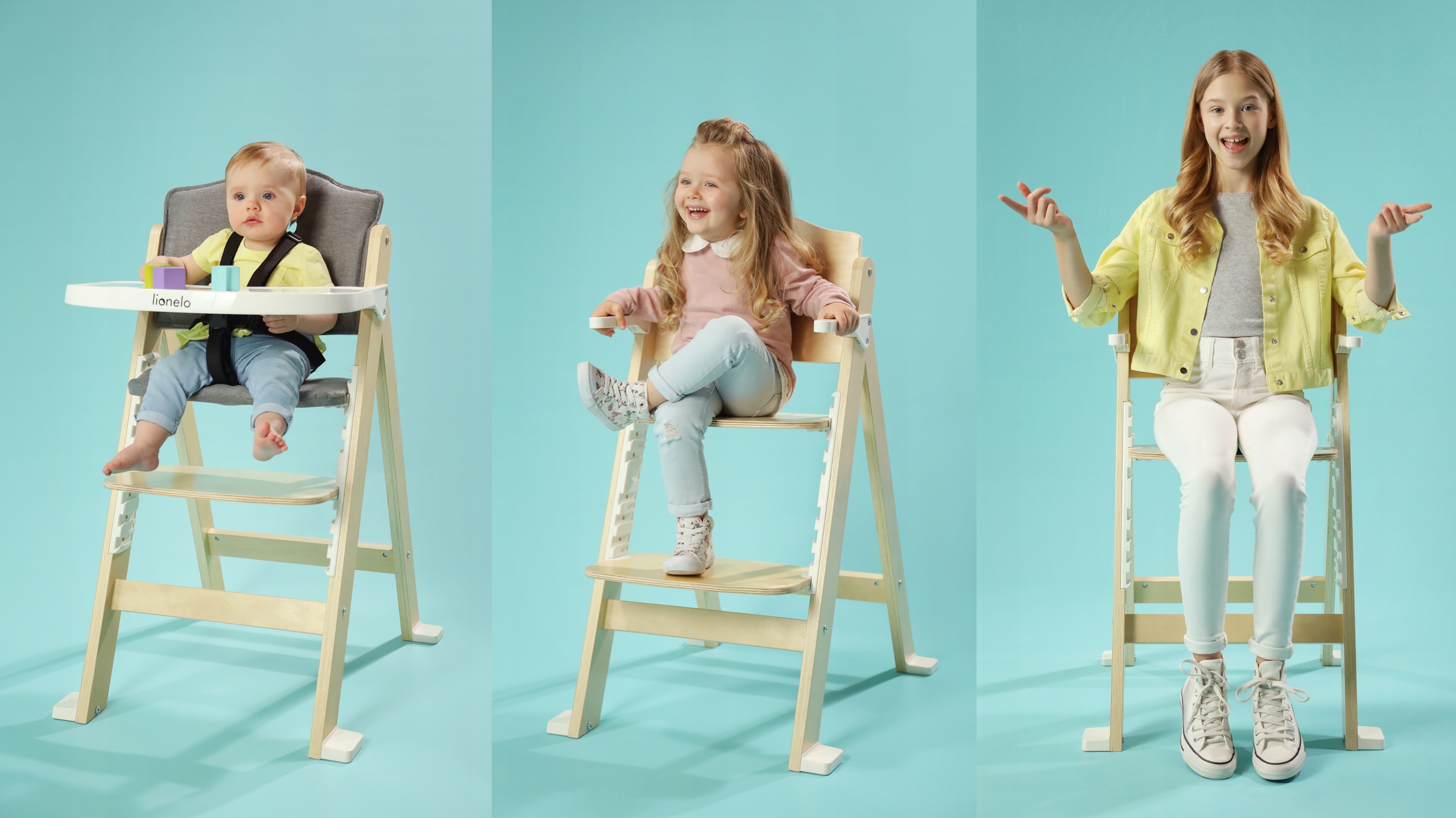 Lionelo Floris занимает мало места, легко подстраивается под высоту стола, а благодаря боковым усилениям на ножках очень устойчив и безопасен.