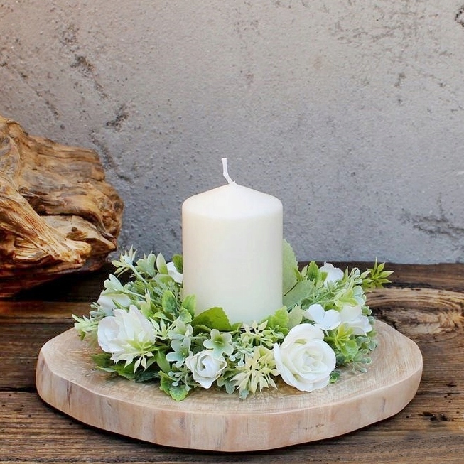 Ищете уникальный подарок? Наше украшение на куске дерева цветами цвета экрю и свечами – идеальный выбор для любителей природы и изысканности. Это не только украшение, это еще и выражение заботы о мирном уголке природы в собственном доме.