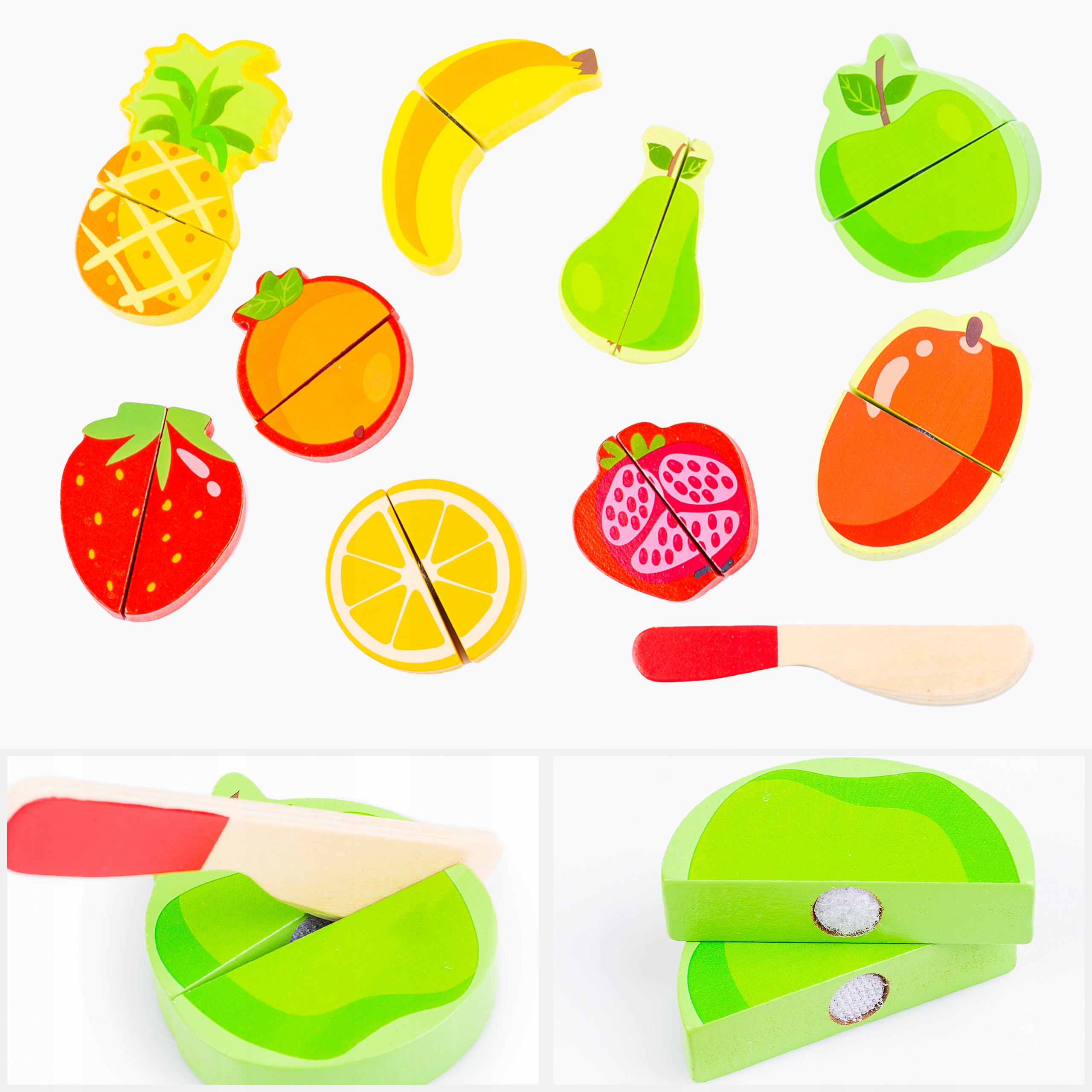 С помощью этой игрушки ваш ребенок выучит названия и узнавание популярных фруктов. Все элементы набора изготовлены из дерева и покрыты безопасной для детей краской.