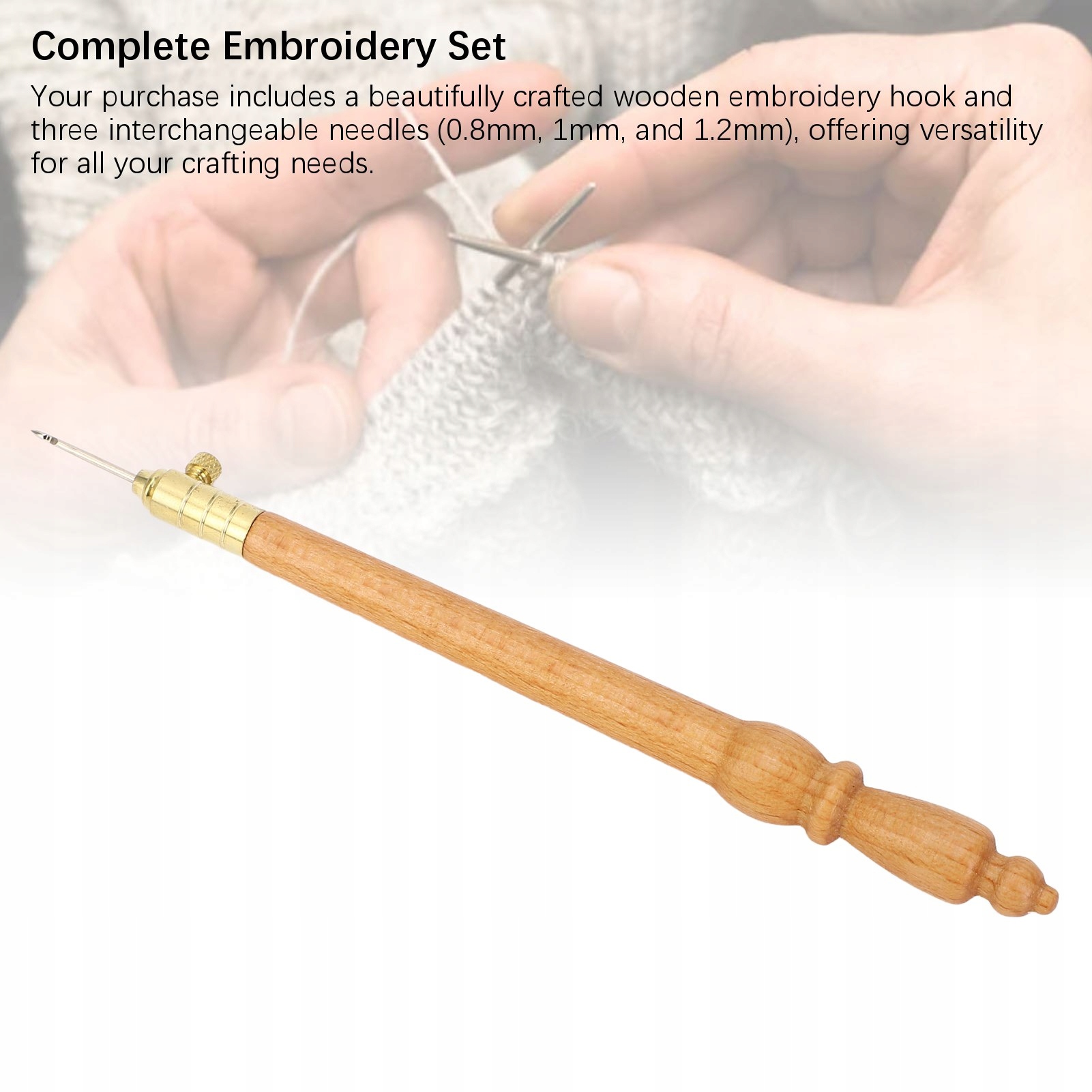 2. Полный набор для вышивания: ваша покупка включает в себя красивый деревянный крючок для вышивания и три сменные иглы (0,8 мм, 1 мм и 1,2 мм), обеспечивающие универсальность для всех ваших потребностей в рукоделии.
