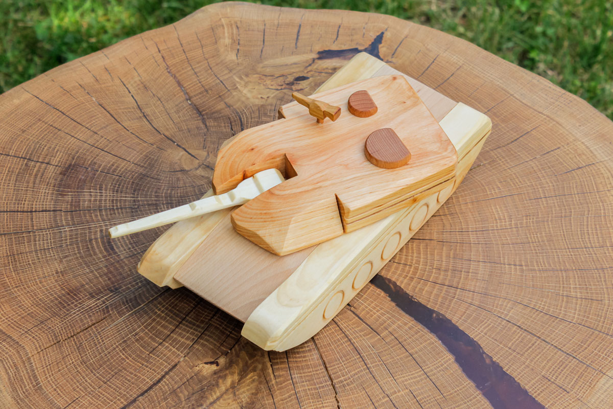 Цветовые оттенки танка «Абрамс» были получены путем комбинирования разных пород дерева.