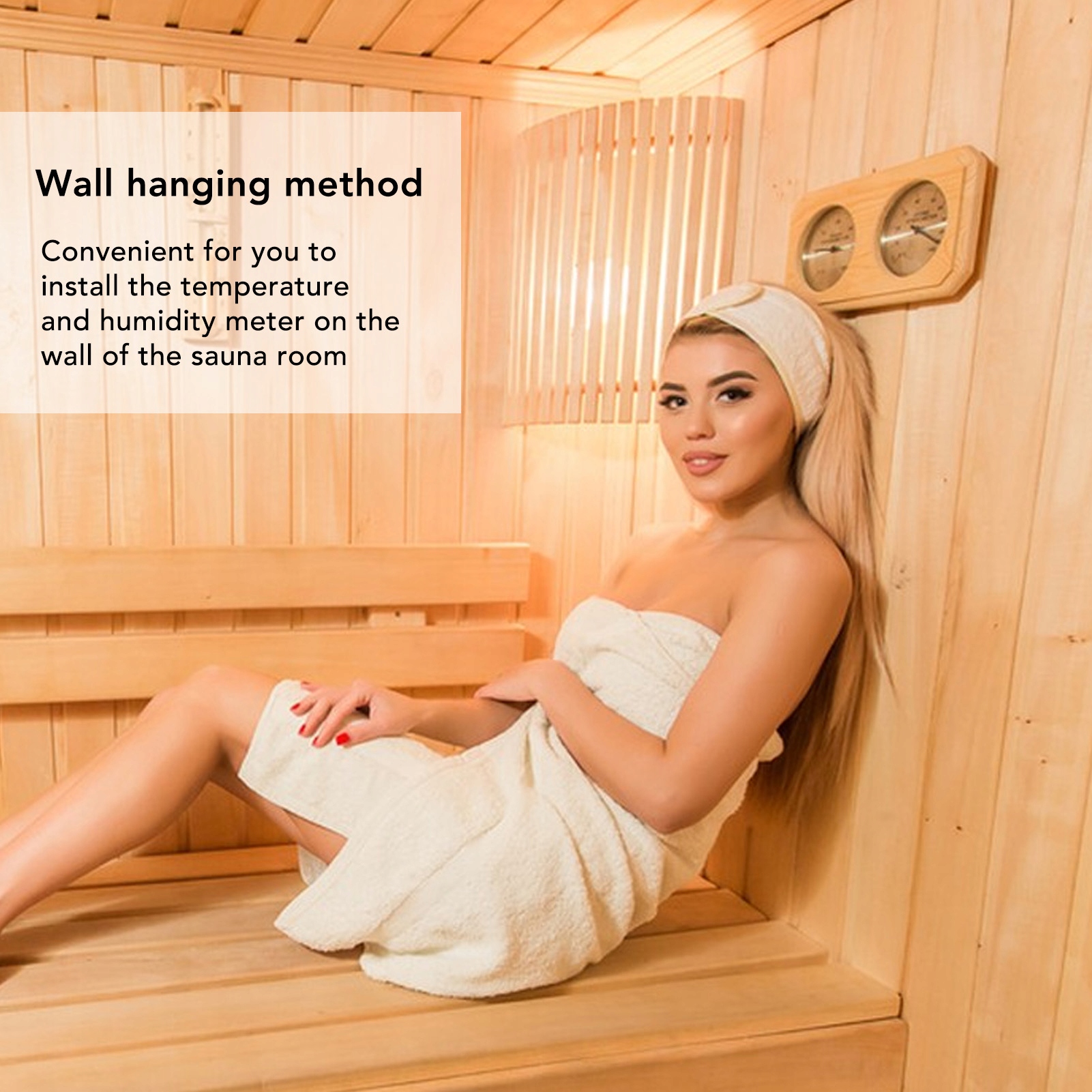 5. Дизайн дома: настенное крепление для удобной установки деревянного термометра и гигрометра на стене сауны, обеспечивающее удобство использования.