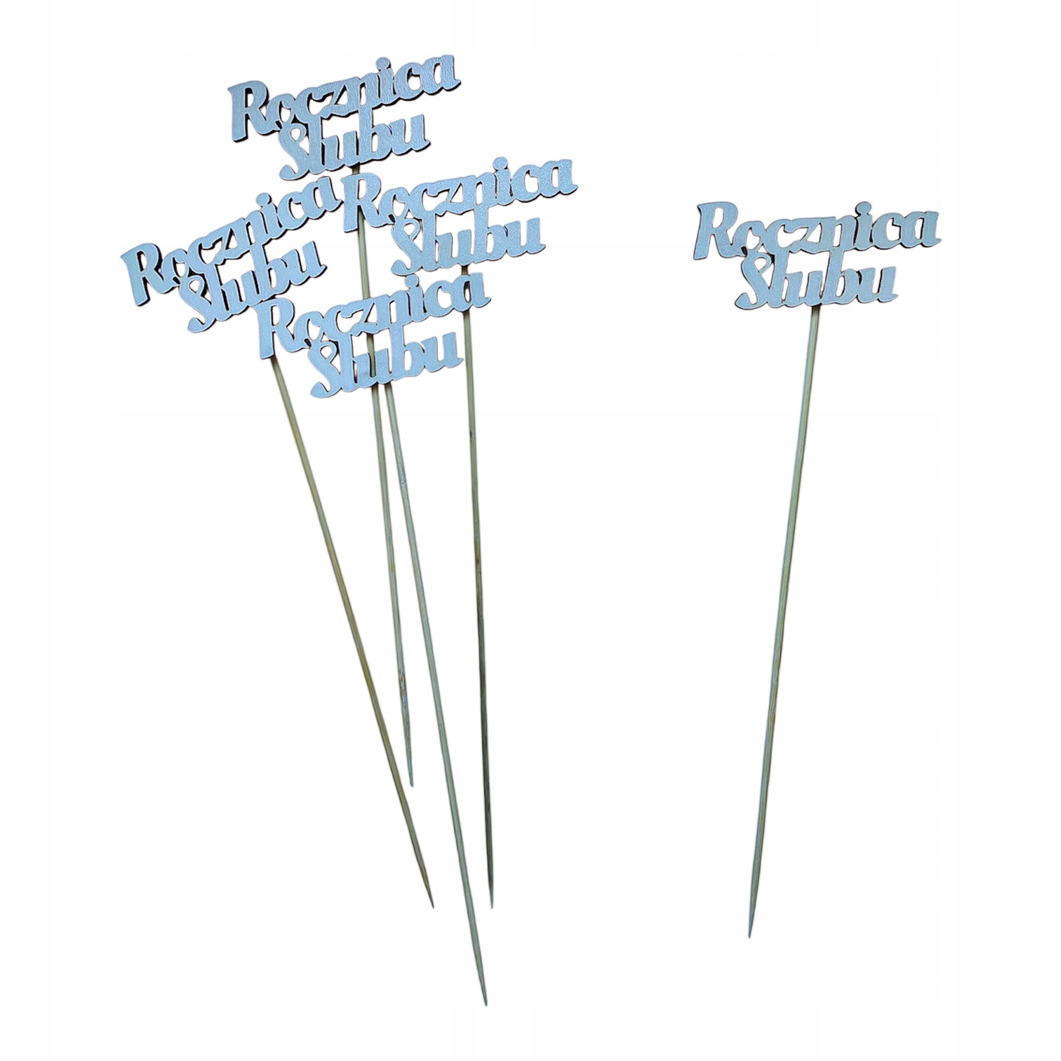 Деревянный топпер "Годовщина свадьбы". БЕЛЫЙ принт на верхней части палочки. 5 шт./компл.