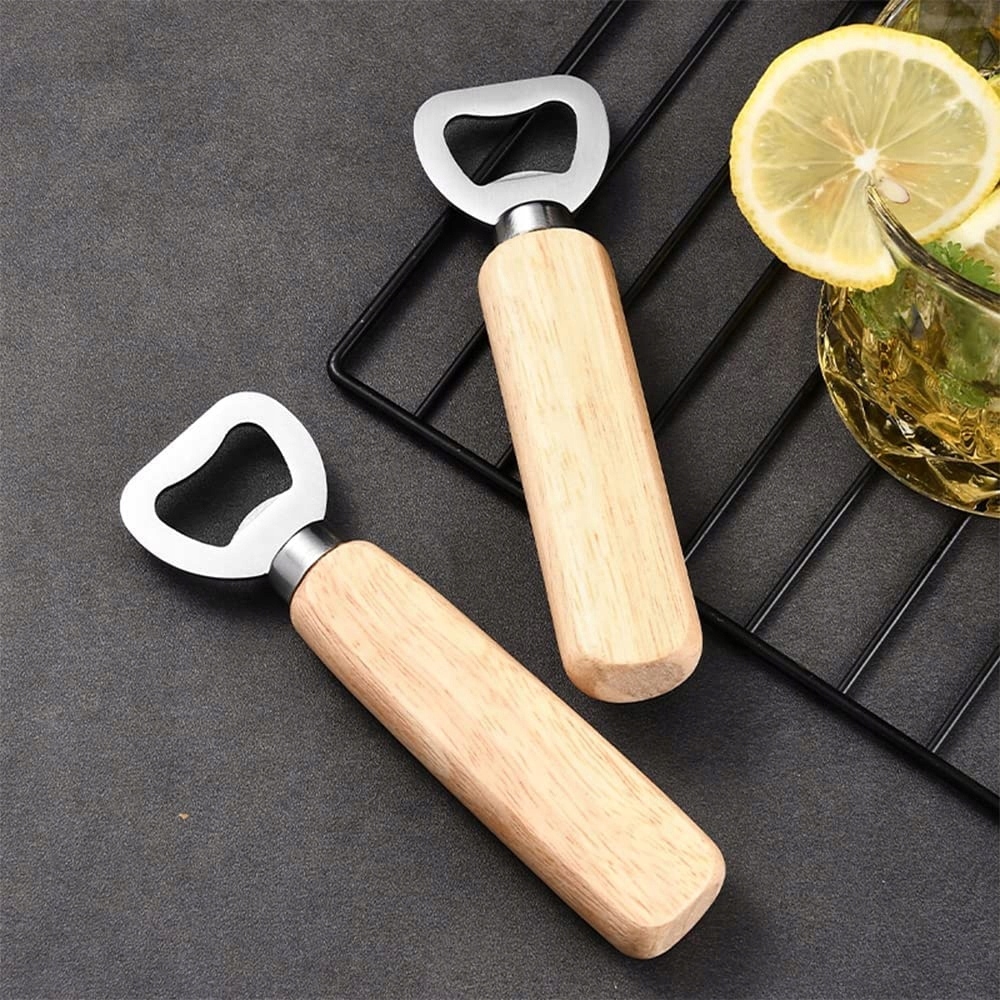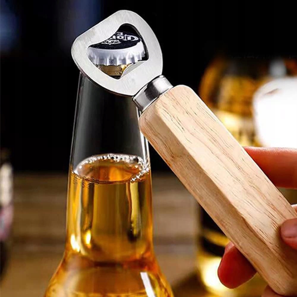 🍻 Открывалка для бутылок с деревянной ручкой подходит для открытия пивных бутылок, бутылок сока, бутылок с молоком и т. д., имеет широкий спектр применения и подходит для ежедневного использования.