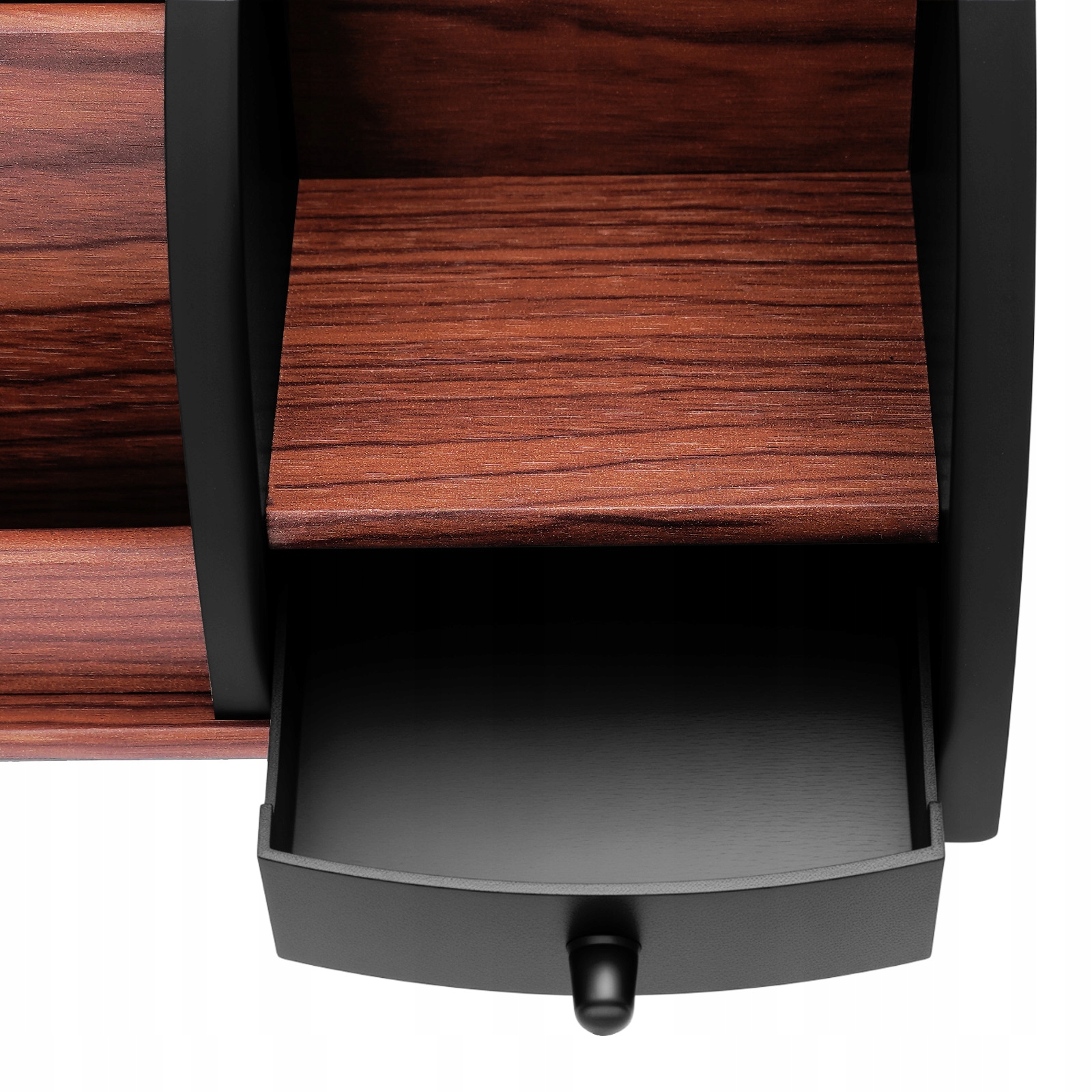 Просторное внутреннее пространство: Эта подставка для ручек представляет собой просто настольный органайзер! В нем 5 отделений и выдвижной ящик, это как мини-кабинет. Будь то ручка, ножницы или небольшой зажим, все они подойдут. Благодаря этому ваш рабочий стол больше не будет неряшливым.