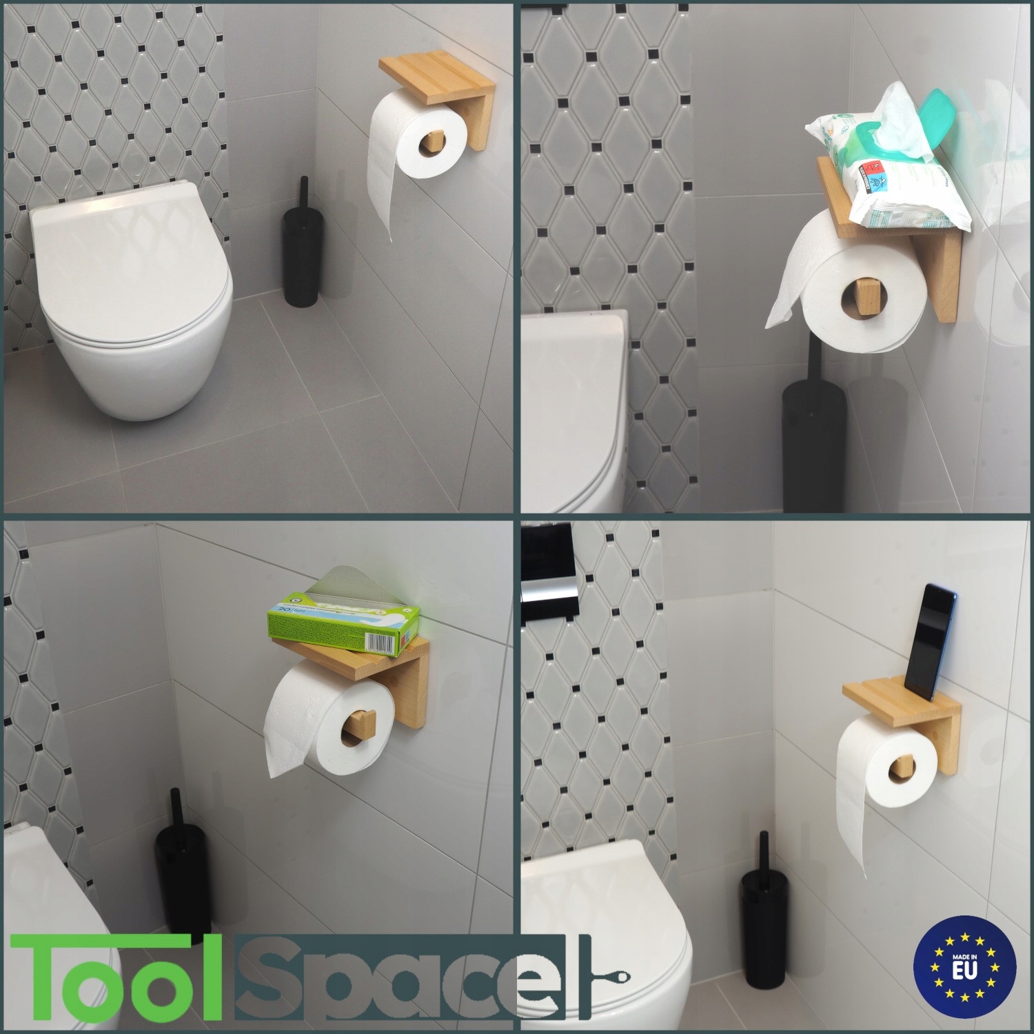 ДЕРЕВЯННЫЙ ДЕРЖАТЕЛЬ ДЛЯ ТУАЛЕТНОЙ БУМАГИ С ПОЛКОЙ