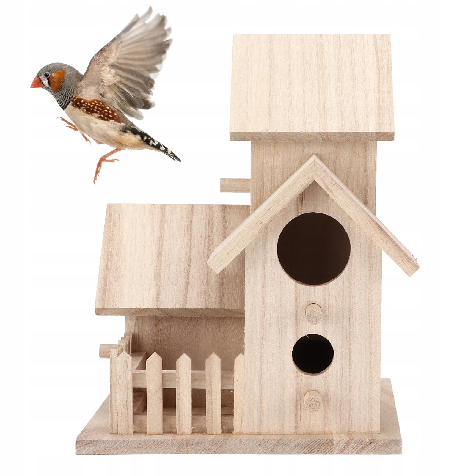 Трехкомнатная конструкция позволяет вместить в этом скворечнике больше диких птиц, чтобы они могли общаться друг с другом.