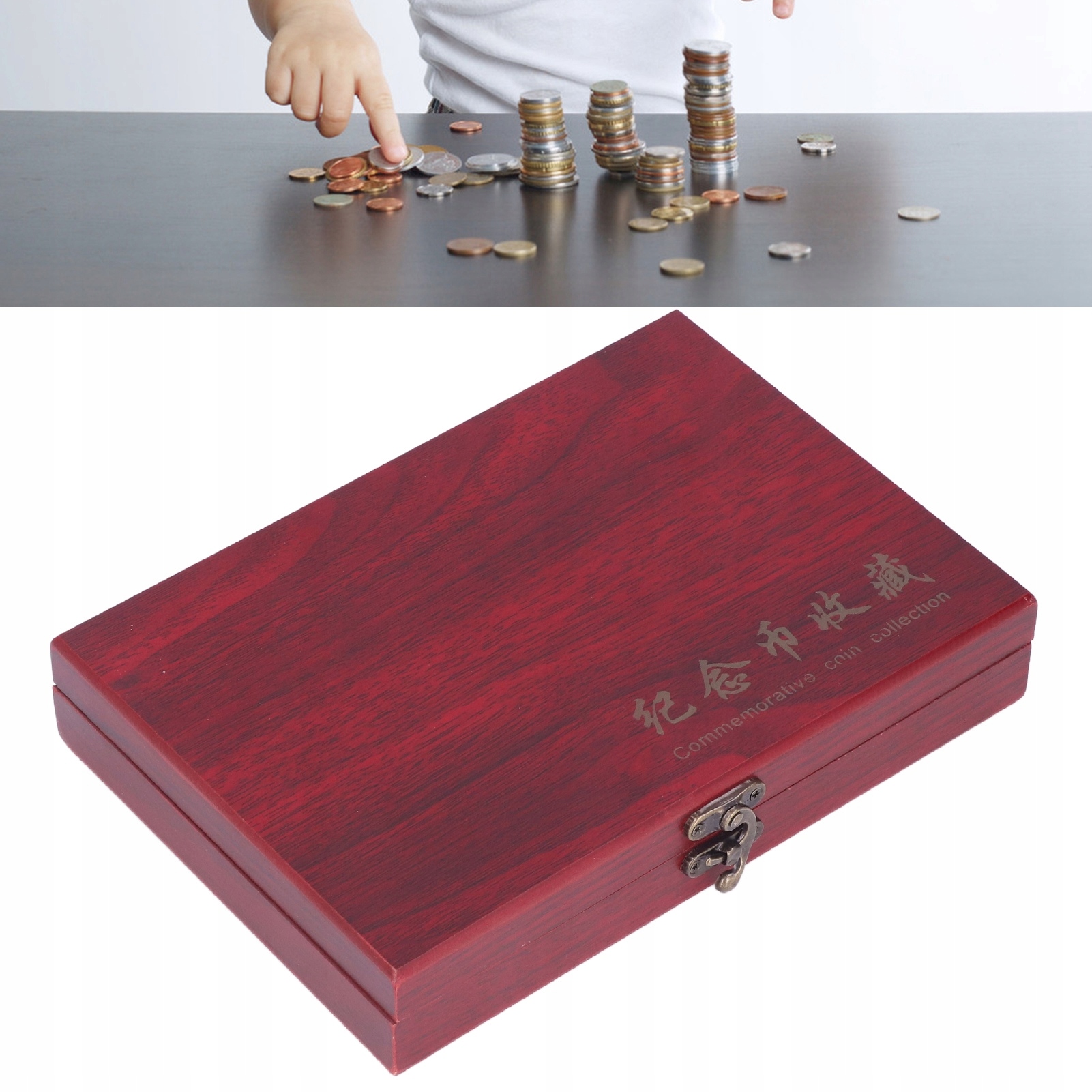 1. [Изысканное качество изготовления] Деревянная коробка изготовлена из композитного дерева темно-красного цвета, элегантная и ретро, которая эффективно защищает ваши монеты от повреждений.