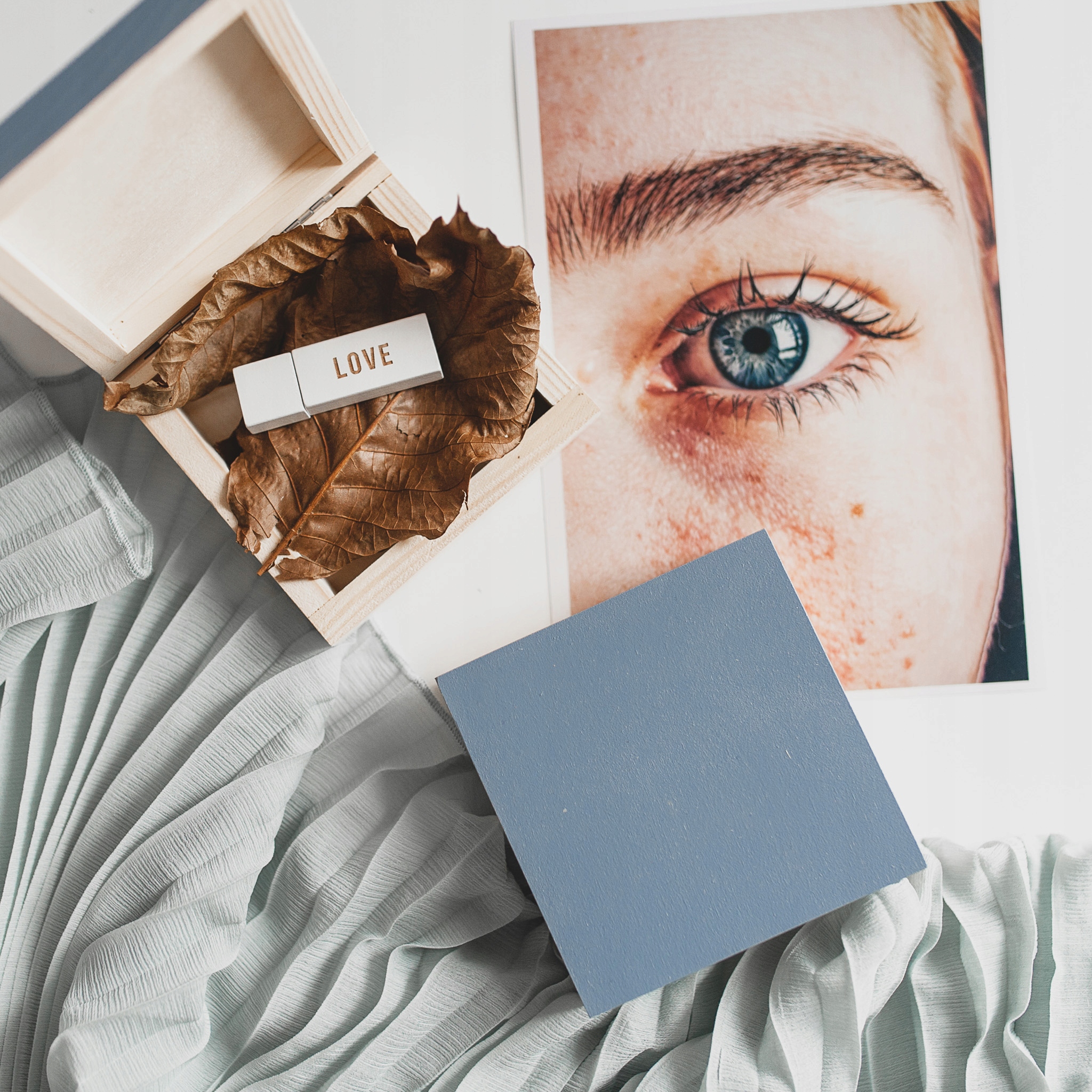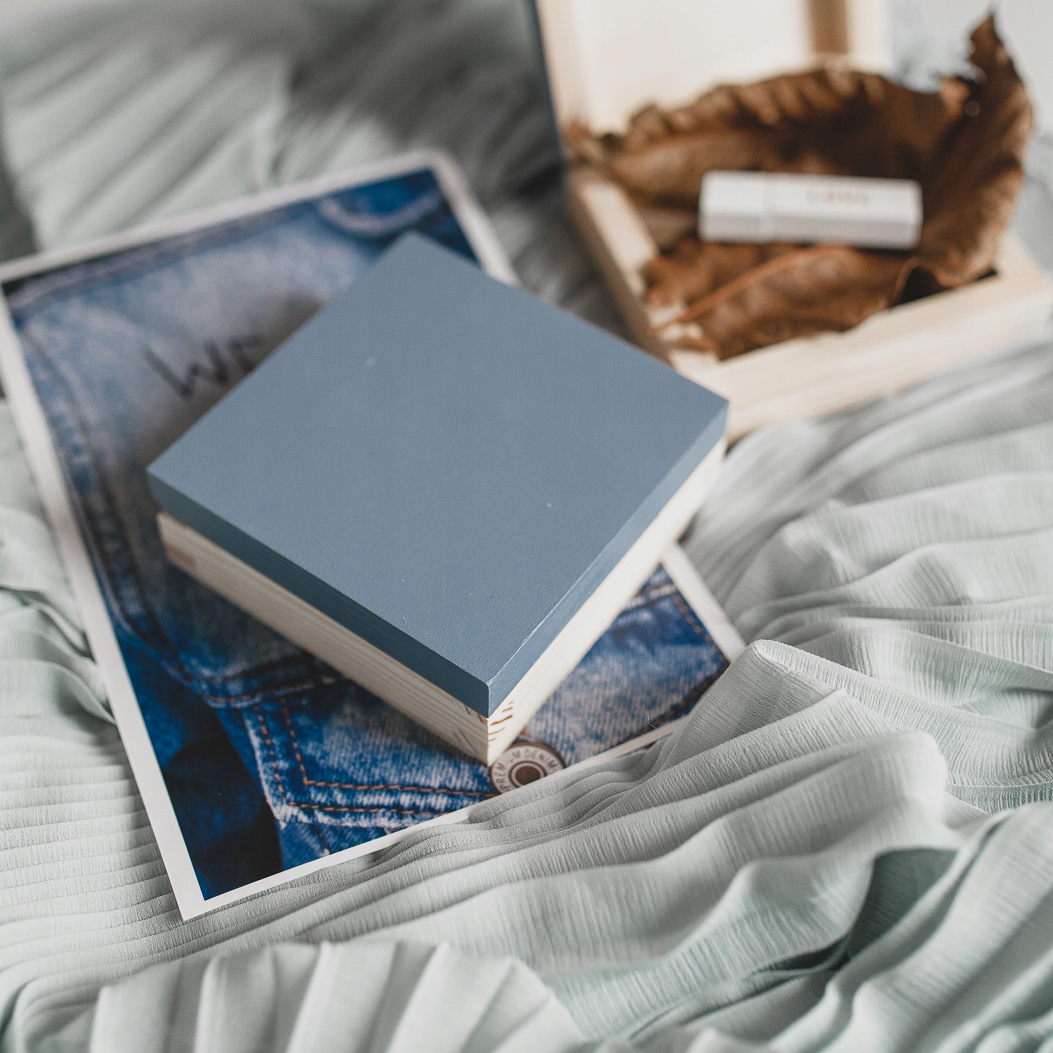 Деревянная синяя коробка Pendrive с гравировкой для подарка