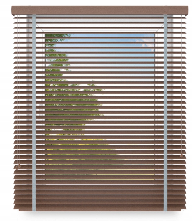 Горизонтальная ламелла с шириной 50 мм изготовлена из натурального сырья - Линден дерево. Следовательно, элементы могут отличаться по цвету, и существует вероятность осторожного выросшего и продольного изгиба. Однако максимально допустимый поворот составляет 0,27% и практически невидим. Деревянные жалюзи также не подходят для комнат, где встречается влага, как ванная. Размеры желоба (кассеты) составляют 58 мм х 50 мм. Ширина материальной лестницы составляет 25 мм. Возможность выбора двух типов решетки: прямой или с сторонами. Бамбук и деревянные жалюзи дают элегантное измерение в комнаты и гарантируют довольно высокое отключение.