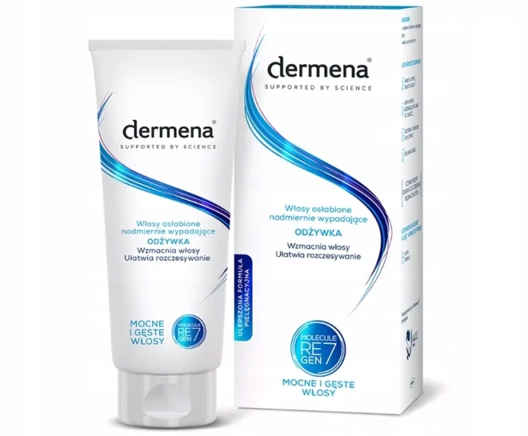 Кондиционер для волос Dermena – инновационный продукт, предназначенный для укрепления сухих, ослабленных и выпадающих волос. Уникальное сочетание питательных и разглаживающих ингредиентов укрепляет волосы и восстанавливает их кератиновую структуру. Запатентованное активное вещество витаминного происхождения (молекула Regen7) замедляет процесс выпадения волос и восстанавливает естественный баланс кожи головы.