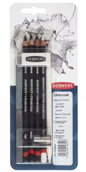 - 3 угольных карандаша Derwent (светлый, средний и темный)