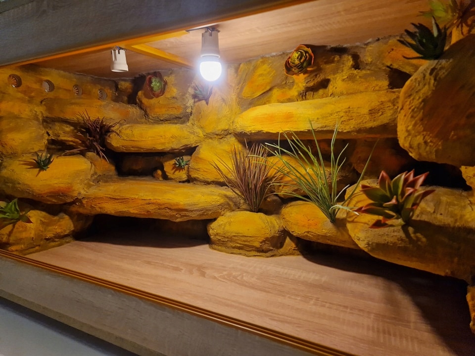 Фотографии показывают террариумы, которые мы сделали для отдельных заказов, и может быть моделью для последующей работы. Террария, заказанная вами, не будет копией, как представленная ниже, но они могут быть похожи. Мы строим каждый бак с нуля. Покупатель имеет возможность выбрать камень (насколько это возможно) и фонового цвета террариума.