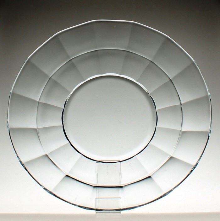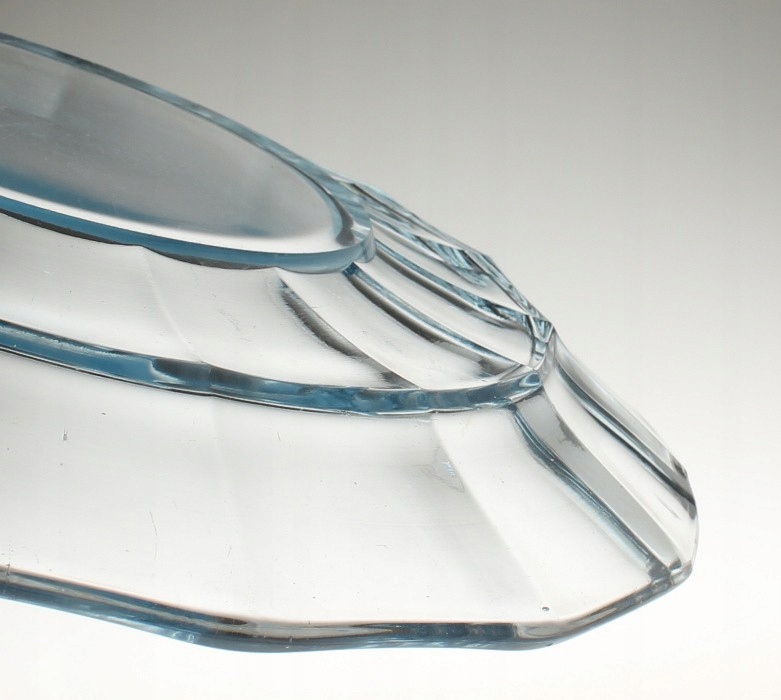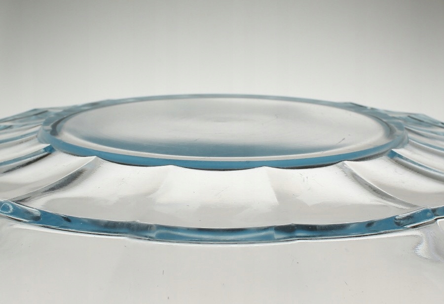 Тарелка десертная из прессованного стекла голубого цвета. Украшен тиснением, напоминающим фацетную резку. Стиль арт-деко.