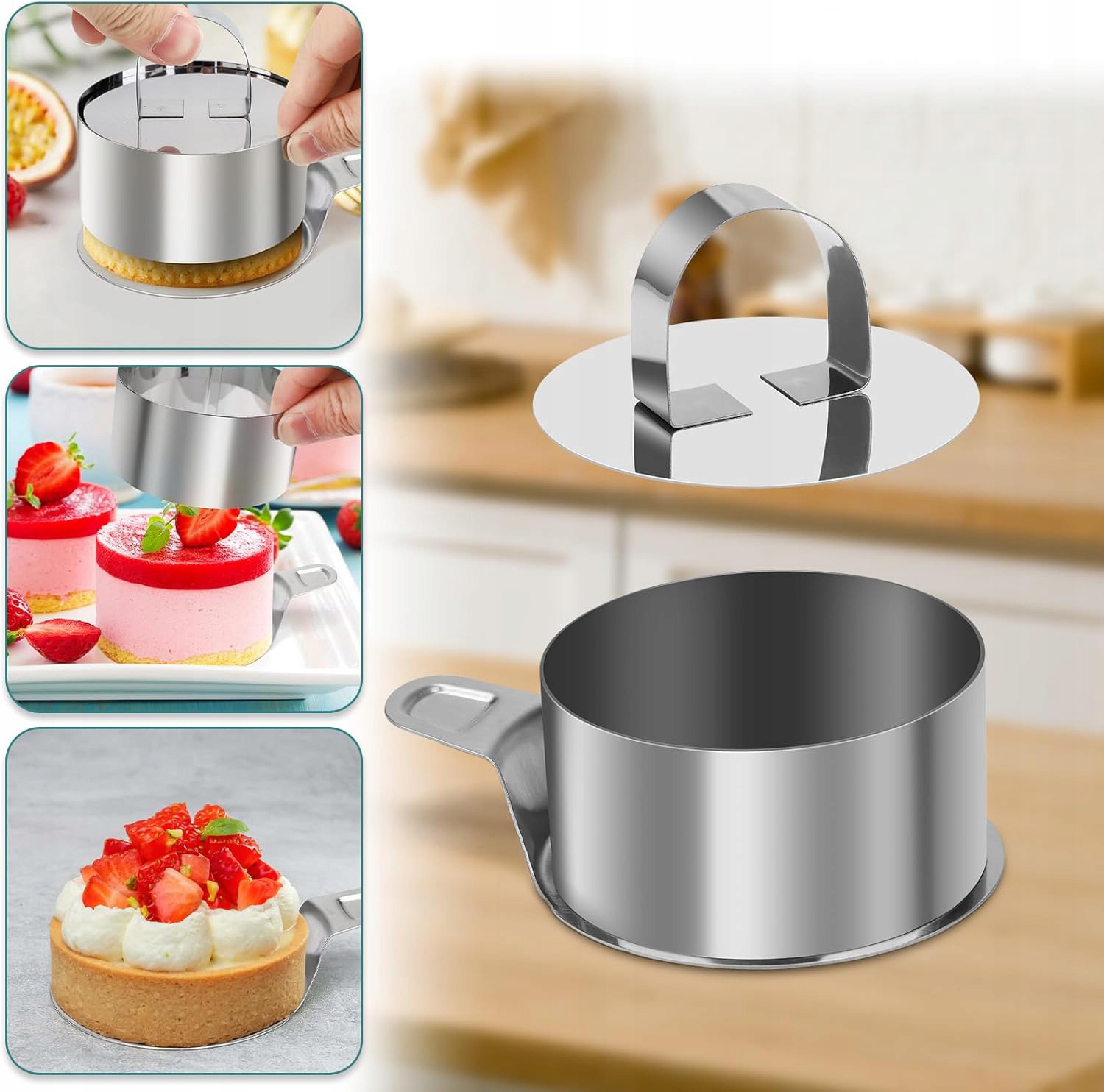 🎂🎂 ЛЕГКО ЧИСТИТЬ: Легко использовать, просто нажмите на нижнюю часть кольца для торта, чтобы снять его. Не легко взломать, легко использовать и чистить, просто положите его в теплую воду и тщательно промойте, чтобы высушить, или положите в посудомоечную машину.