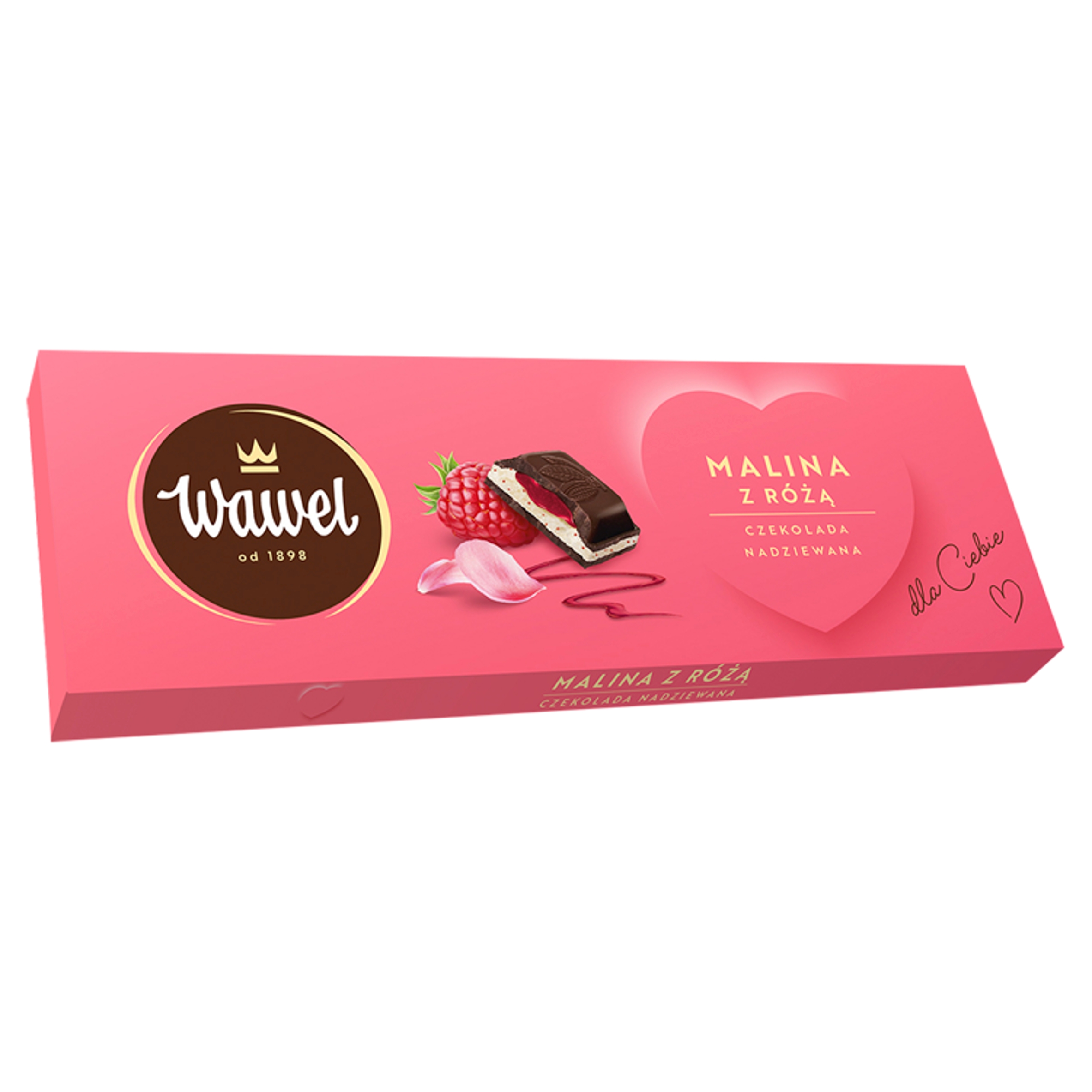 Малина с розовым шоколадом — это идеальное сочетание изысканного Вавельского десертного шоколада и характерной малиново-розовой начинки . Наполненный до краев шоколадом, мусс соблазняет вкусом ароматной малины в сочетании со сливочно-молочной мягкостью остальных ингредиентов начинки. Уникальная вариация, которая понравится всем любителям изысканных вкусовых композиций.