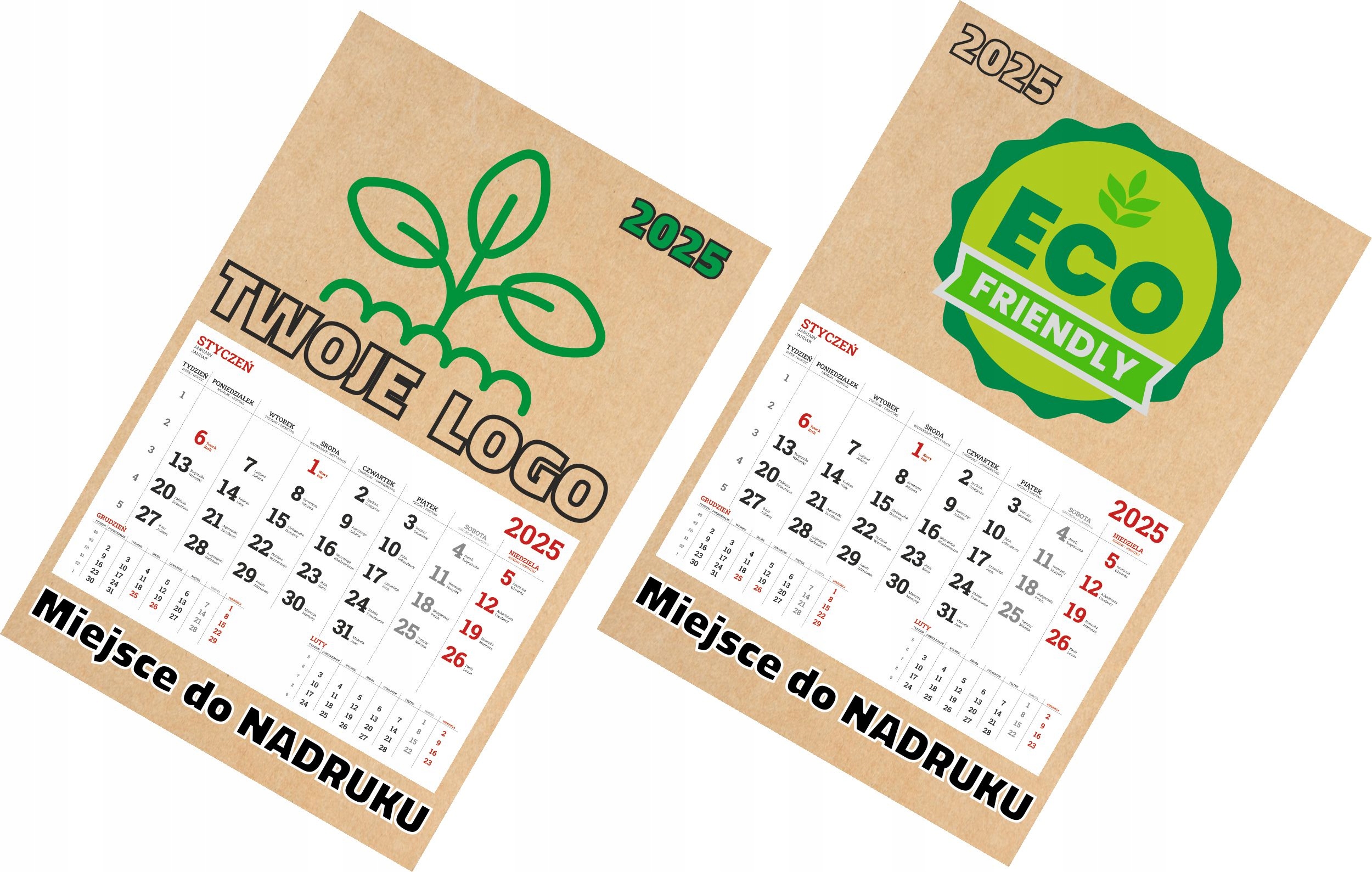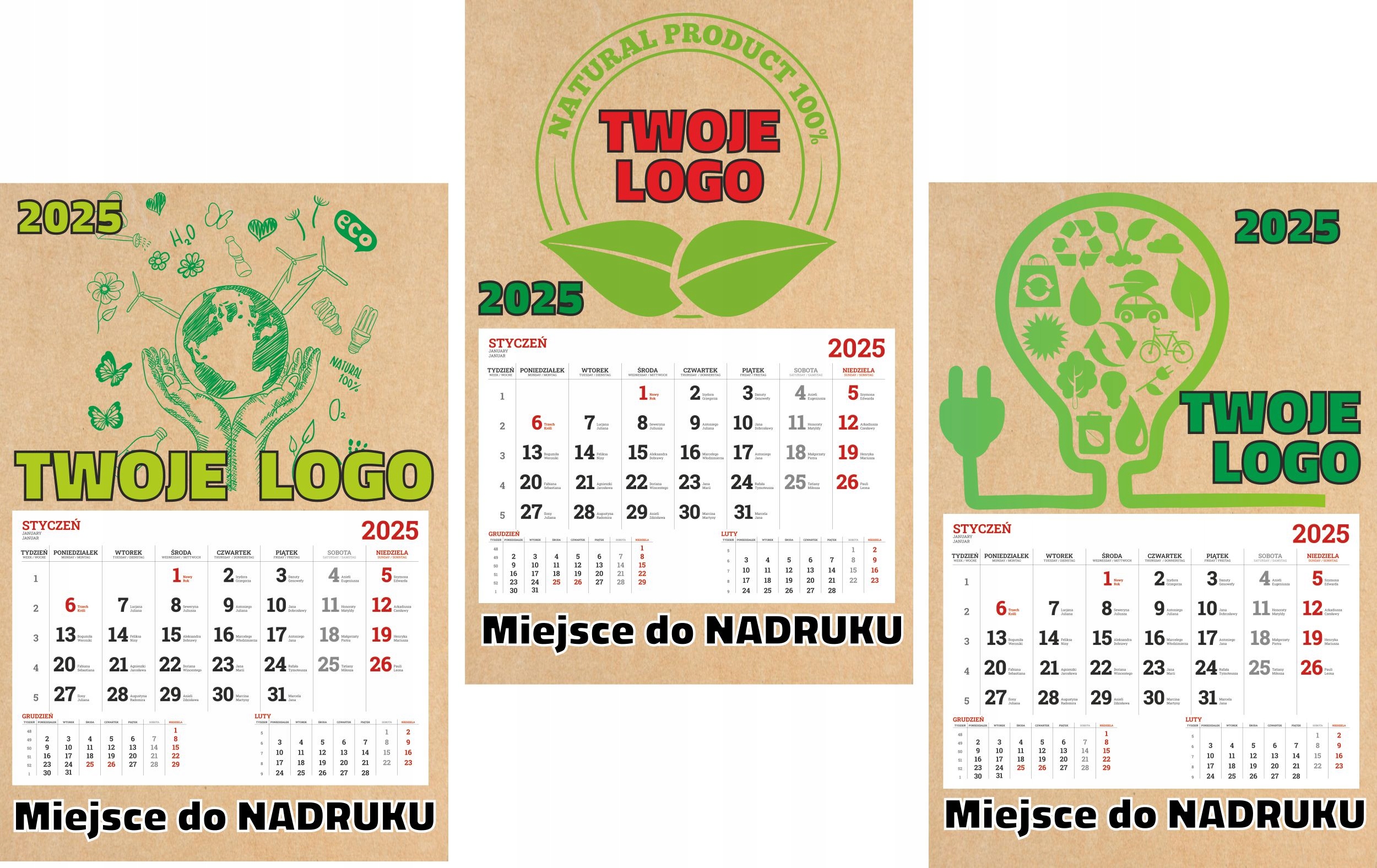 Дешеві календарі ЕКО ОДНОСТОРОННІ 2025 з ПРИНТОМ з вашим ЛОГОТИПОМ 100 шт.