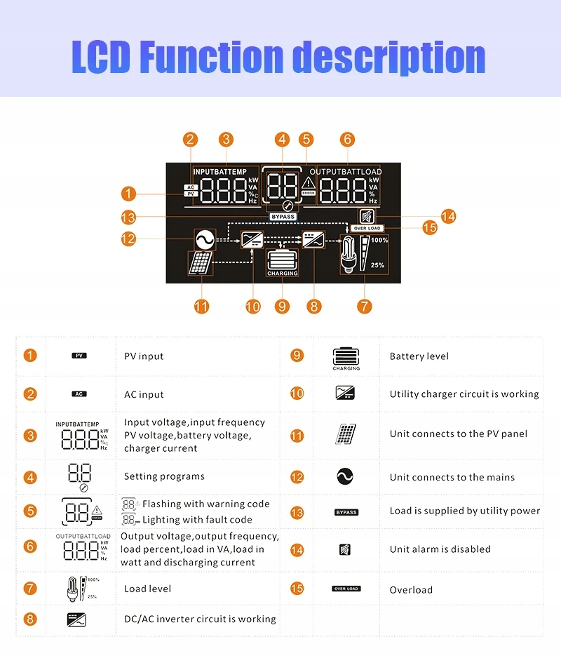4. Настраивается приоритет переменного тока/солнечное зарядное устройство, установив меню ЖК -дисплеев