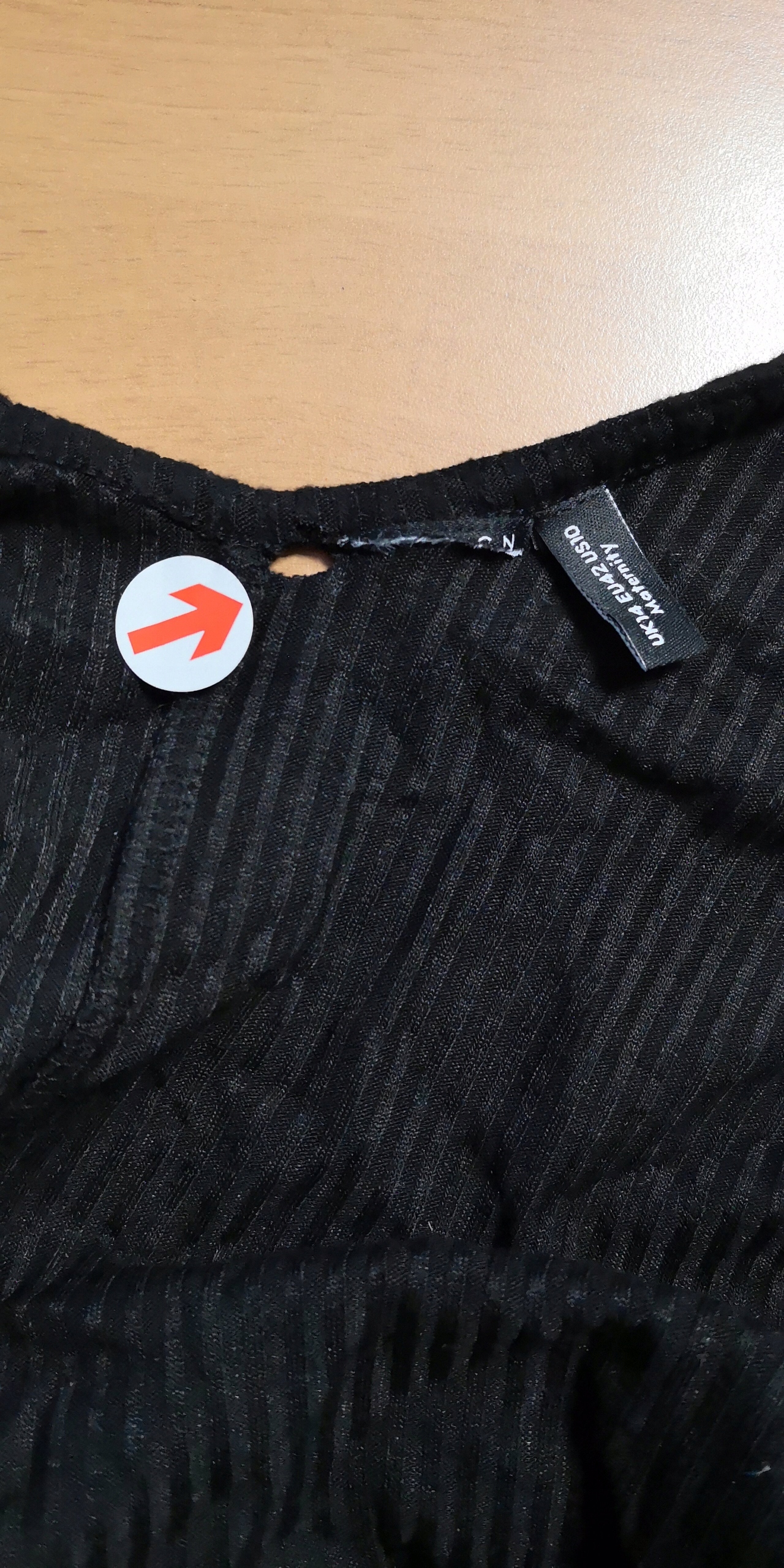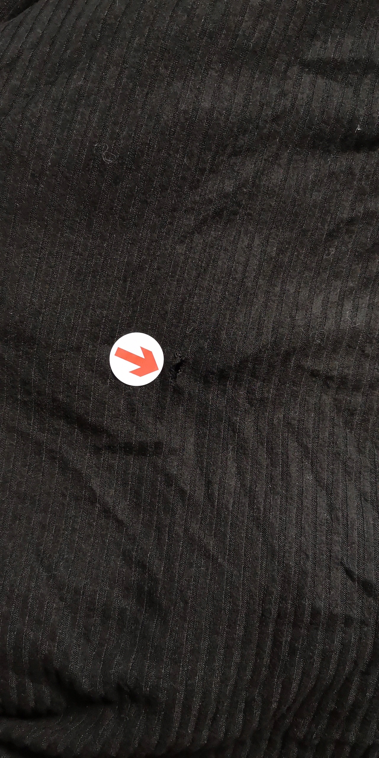 Небольшая дырочка возле бедер и после срезания бирки (прикрепляю реальное фото дефекта) Отслоился материал - нужно почистить.