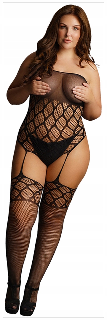 Боди не имеет промежности и подходит для размеров от XXL до 5XL. В комплект не входят стринги.