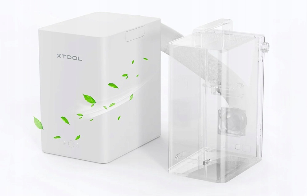 Настольный очиститель дыма xTool гармонично работает с устройством xTool F1. Очиститель автоматически запускается и останавливается, адаптируя свою работу к работе xTool F1. Это не только обеспечивает комфорт, но и дополнительную очистку воздуха даже после окончания работы устройства.