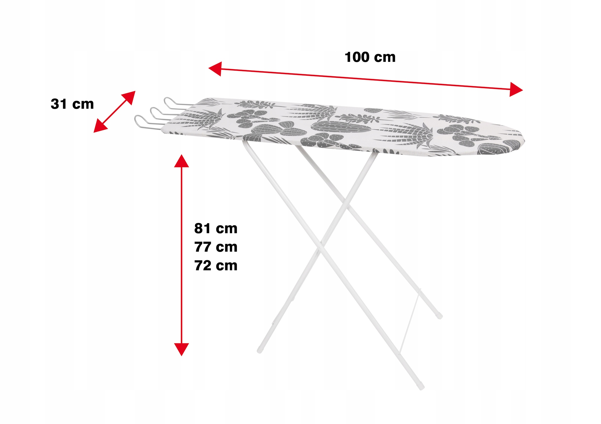 ✅Эргономичный дизайндоски с возможностью регулировки высоты на трех уровнях (72, 77, 81 см) подстраивается под индивидуально потребностям пользователя, обеспечивая комфорт во время глажки.