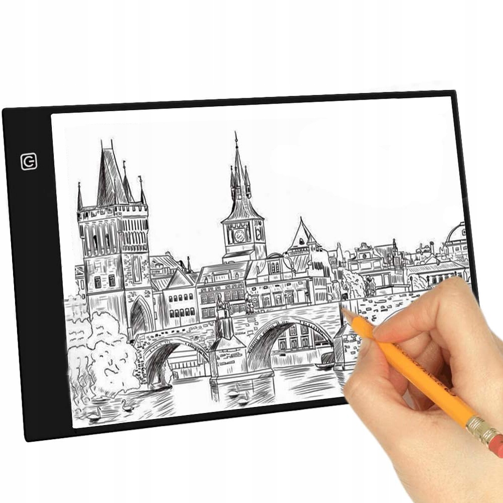 DESKA KREŚLARSKA LED PODŚWIETLANA TABLICA MOŻLIWOŚĆ PRZYCIEMNIANIA A4 KALKA
