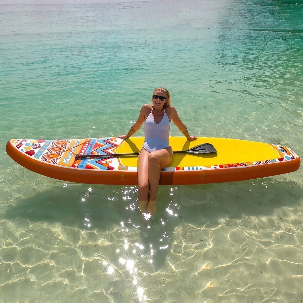 Доска для серфинга оснащена чрезвычайно удобной противоскользящей подушкой из этиленвинилацетата, изготовленной из безопасного и экологически чистого материала. Этот коврик также можно использовать в качестве коврика для йоги, обеспечивая лучшую защиту от падения и устойчивую поверхность для занятий спортом.