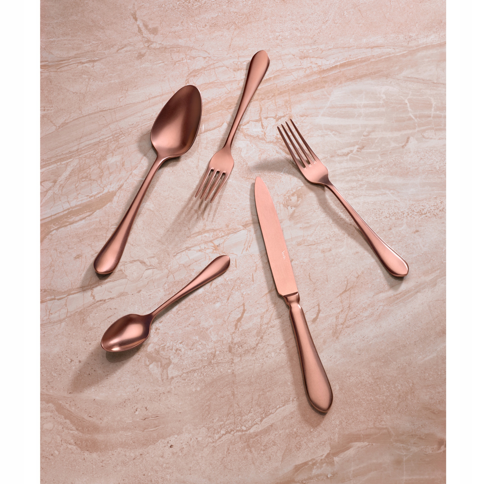 Коллекция Destello Copper - немного модного безумия в отношении столовых во французском стиле. Упрощенные, массивные ручки с элегантной линией подчеркивают этот стиль. Уникальная канавка в верхней части ручки покоряет визуальные эффекты этой коллекции. Широкие ложки тонко сужаются, являются ссылкой на традиционный стиль. Это также отличный выбор для деревенской кухни.