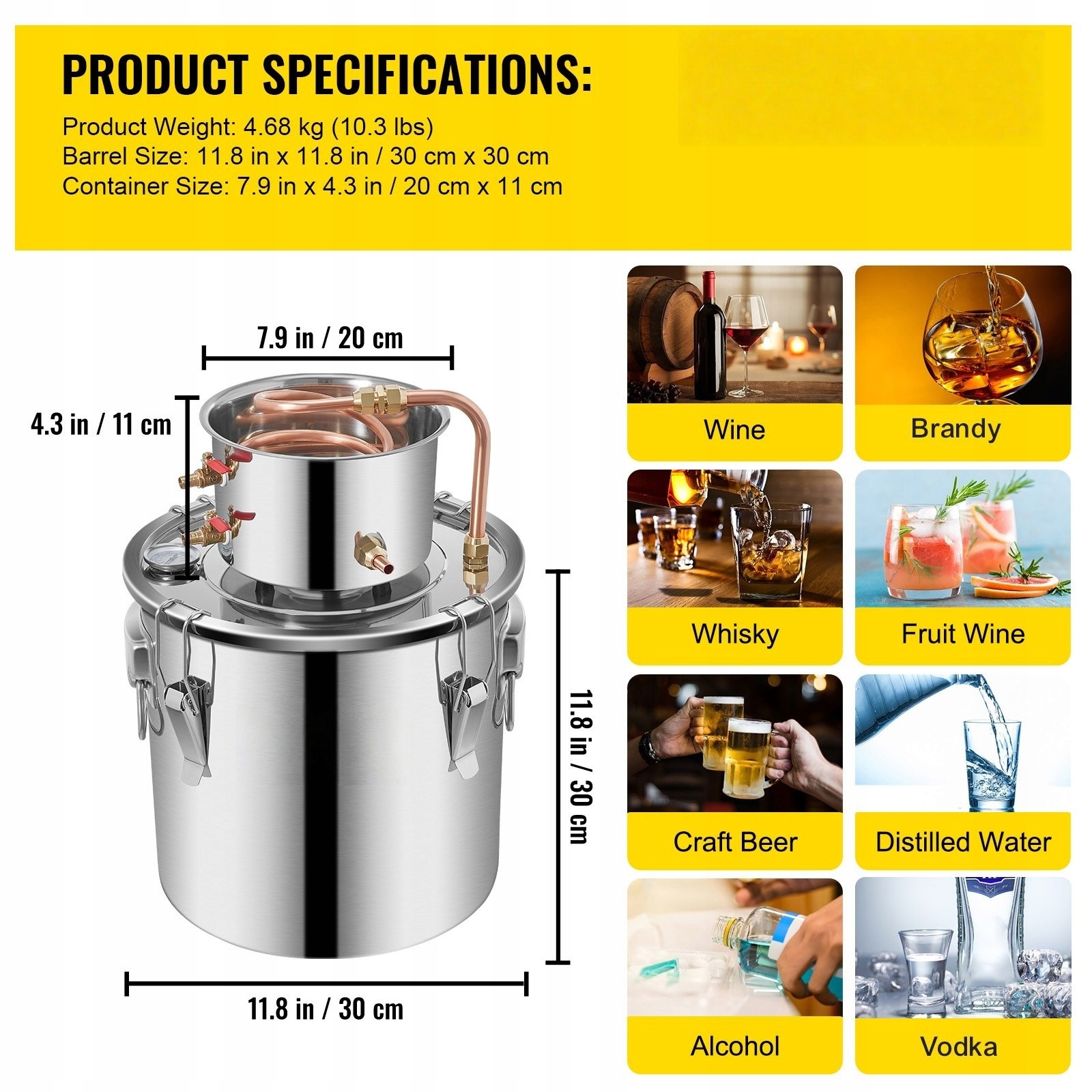 Важное примечание. Покупатель несет исключительную ответственность за обеспечение соблюдения всех местных, государственных и национальных правил, касающихся дистилляции спирта. Этот продукт предназначен для законного использования, например, для дистилляции воды или эфирных масел, где это разрешено.