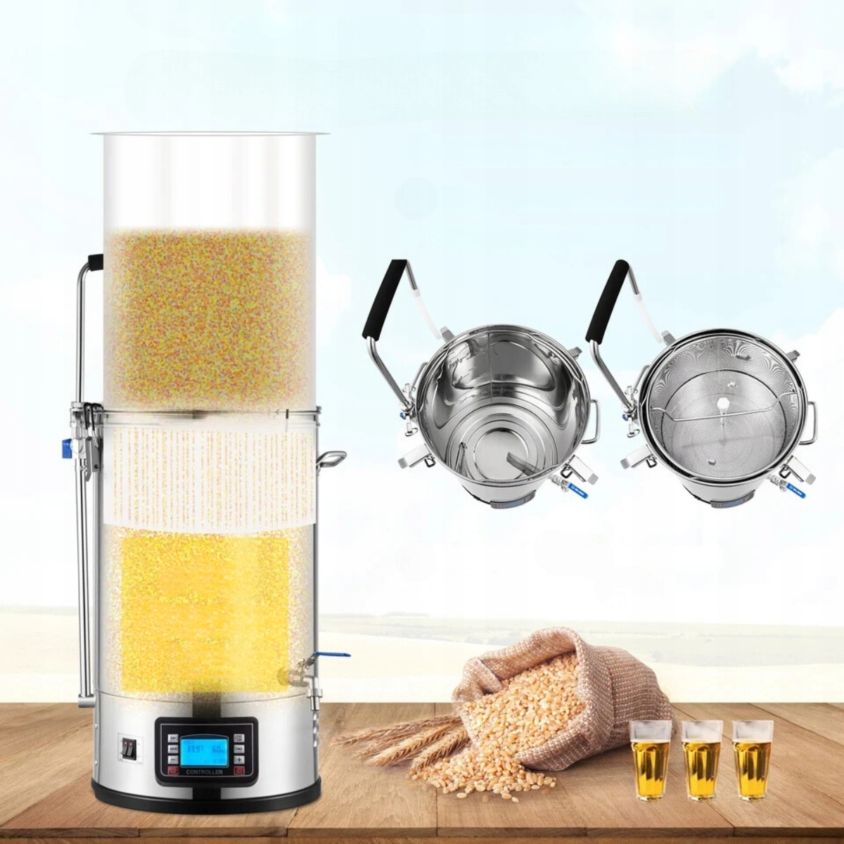 ✔ Большая емкость заваривания: Система имеет чашу емкостью 35 л и может весить до 30 л пива b>, что позволяет затирать до 8 кг солода за раз. Это идеальное решение для домашнего и коммерческого использования.