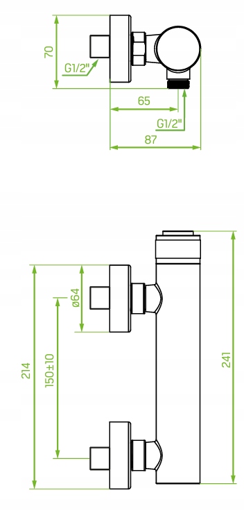Диапазон от стены: 38 см (до центра душевой лейки)