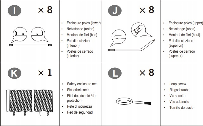 - Простота сборки – трубы можно быстро соединить благодаря стопорным пружинам. В комплект поставки входят маркированные детали, понятное руководство по эксплуатации (может быть недоступно на польском языке) и все необходимые инструменты, позволяющие легко собрать детский батут диаметром 305 см.