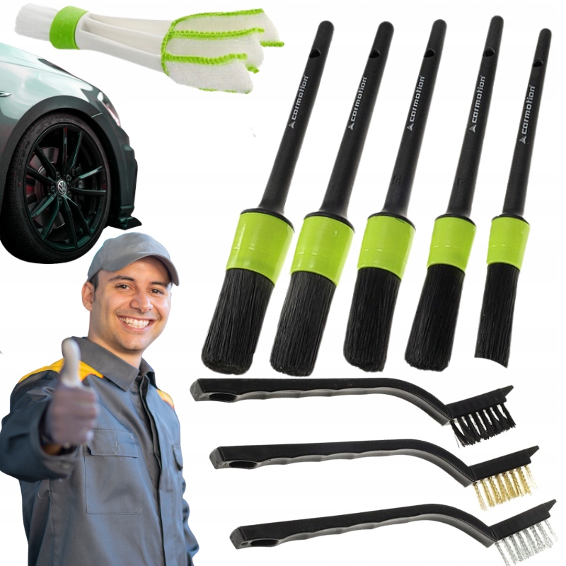 Набор инструментов для детейлинга — залог идеального ухода за вашим автомобилем. В набор входят кисти для детейлинга различных размеров, которые позволяют тщательно очистка даже самых мелких деталей.