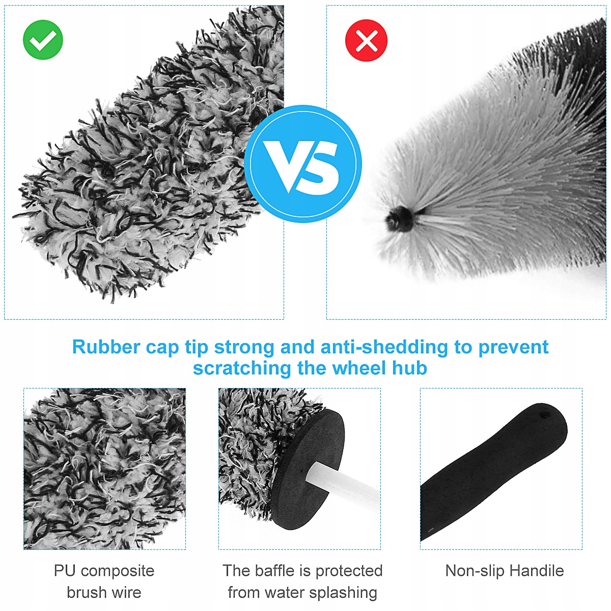 - Достаточно длинная гибкая щетка для чистки шин идеально подходит для очистки внутренней части колеса и других поверхностей. труднодоступные места