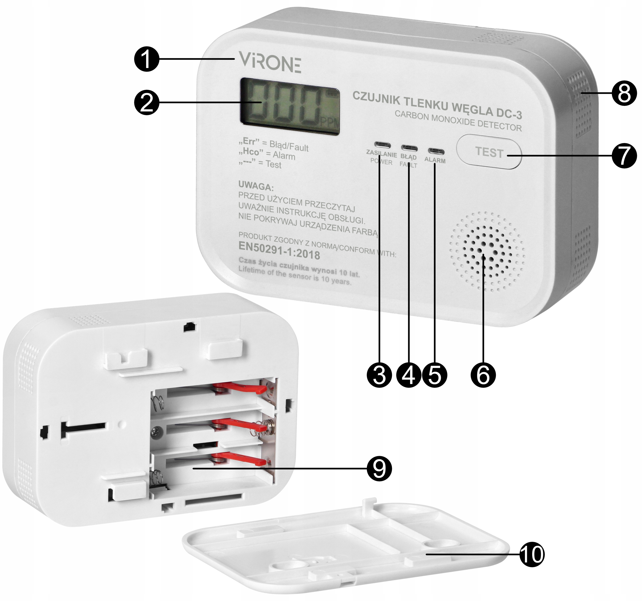 Датчик угарного газа VIRONE DC-3 соответствует строгому стандарту EN 50291 -1: 2018 г. для бытовых детекторов угарного газа.